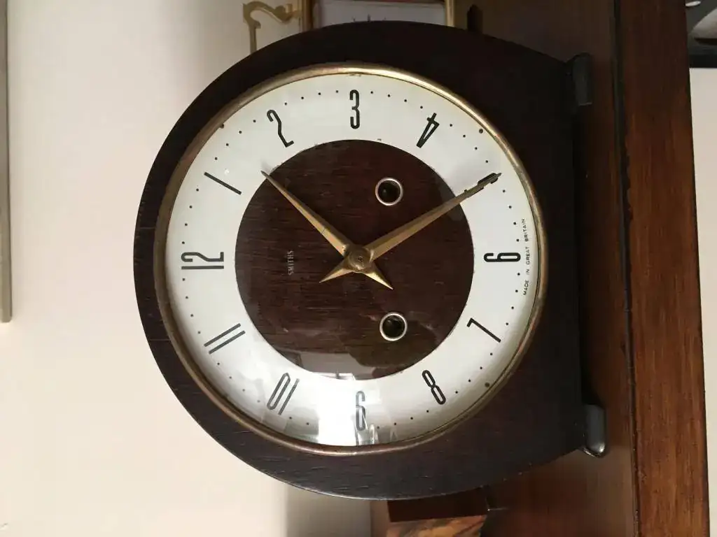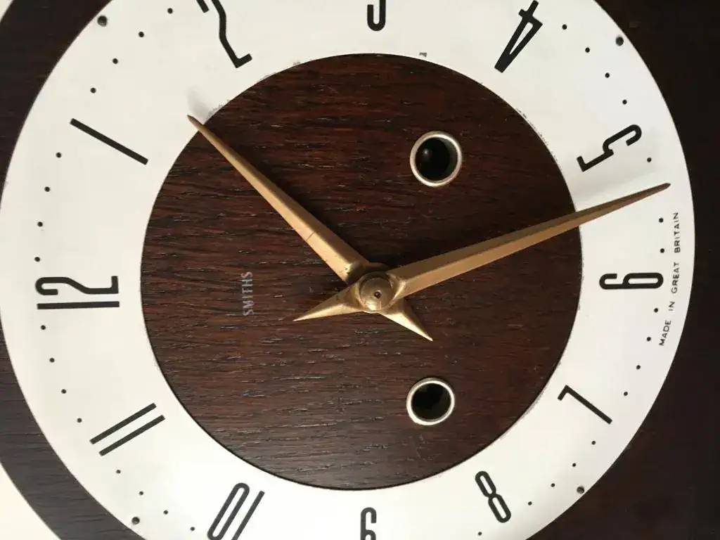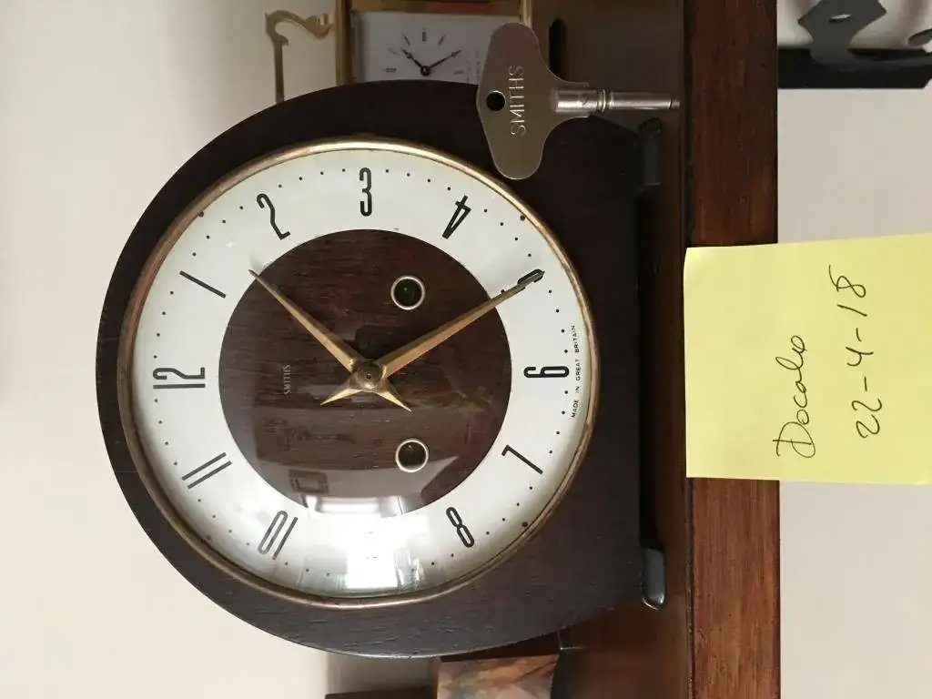 Fabricado en Reino Unido por Smiths en los años 50 y se conserva como si fuese ayer, maquinaria mecanica de cuerda de 8 dias con soneria sobre espiral en horas y medias, mueble en madera de roble, mide 20x20cm. maquinaria revisada, limpia y aceitada. 110€ envio incluido por mensajeria.Marca: