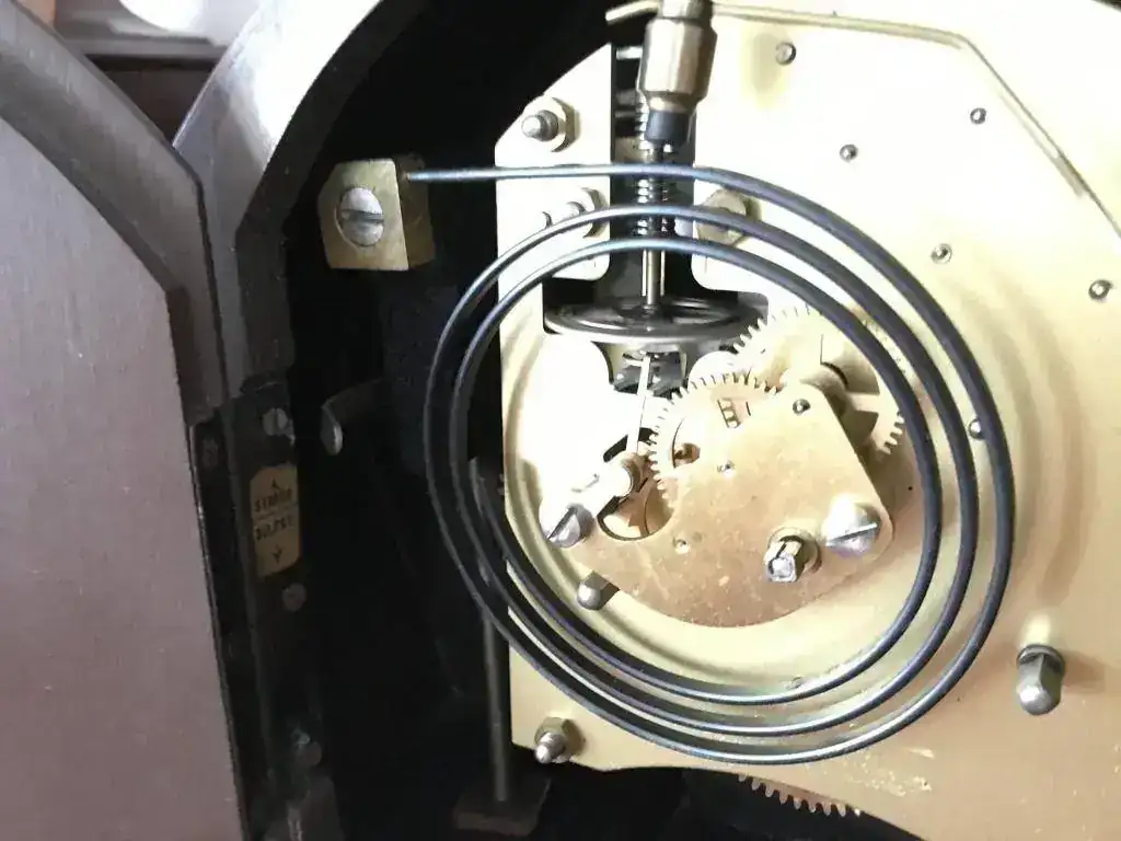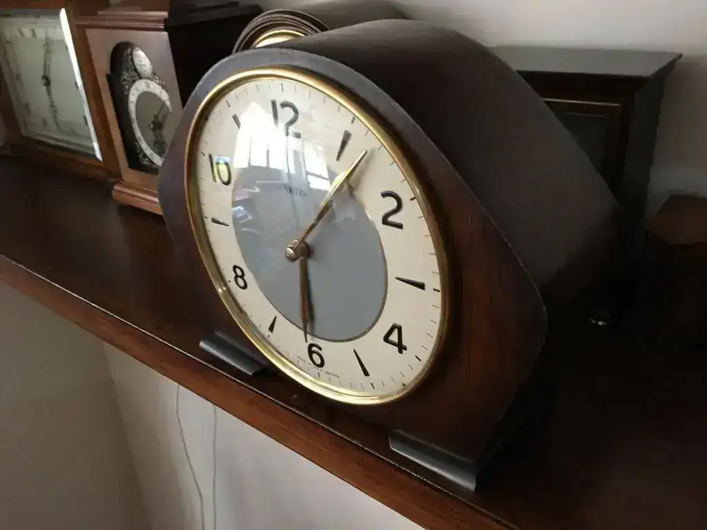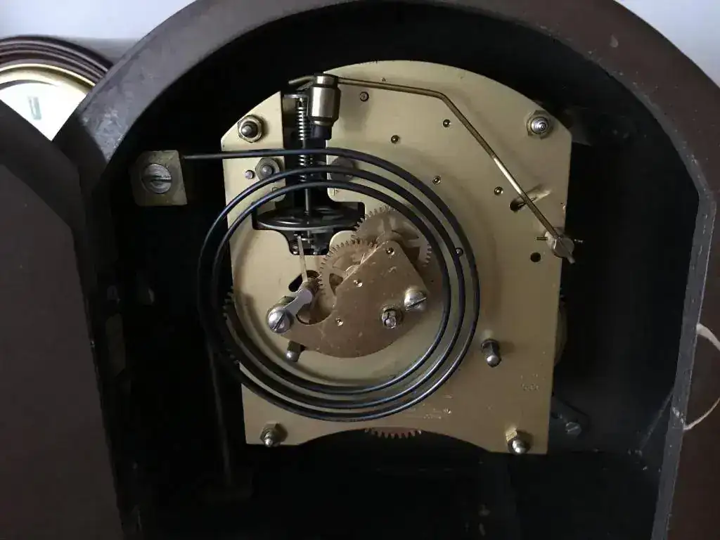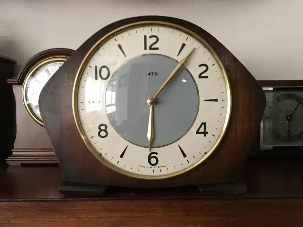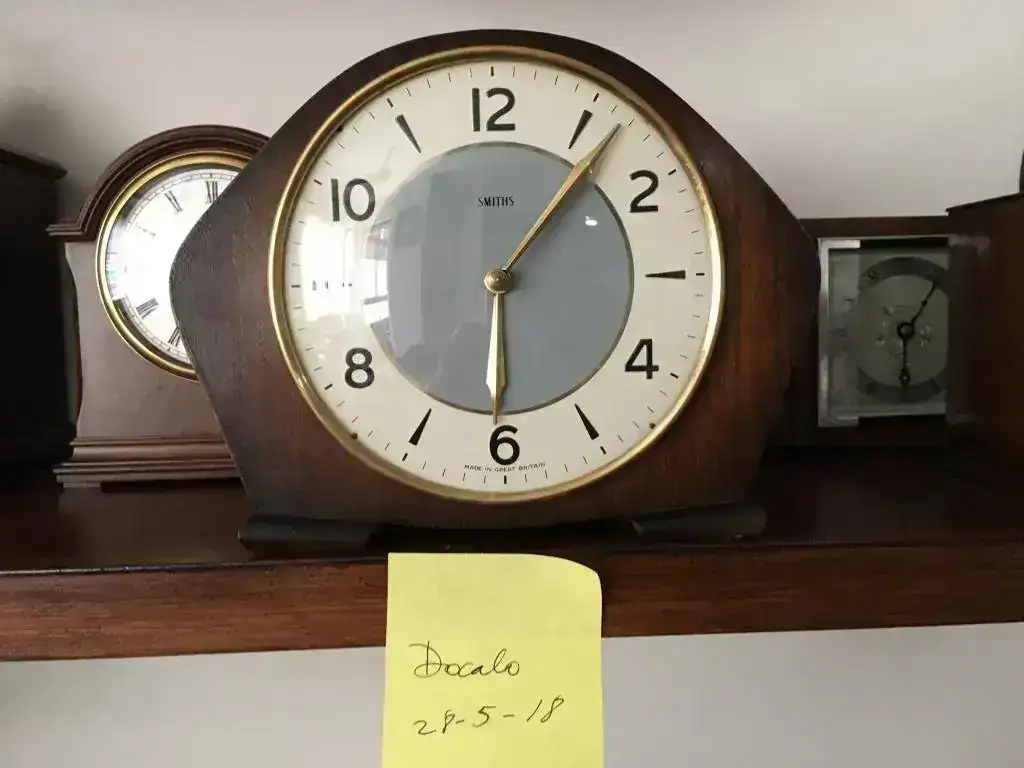 Reloj de sobremesa ingles marca Smiths fabricado en los años 60 en Reino Unido. Maquinaria mecanica de 8 dias con soneria en horas y medias sobre espiral, palanca para desconexion de la soneria. Mide 26x19cm. Estado y funcionamiento excelente. Reloj revisado, maquinaria limpia y aceitada. 95€ envio incluido por mensajeria