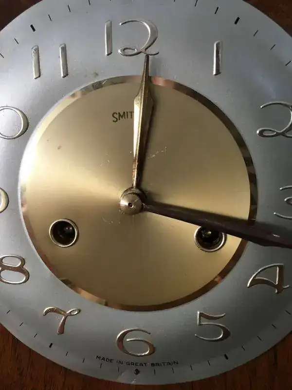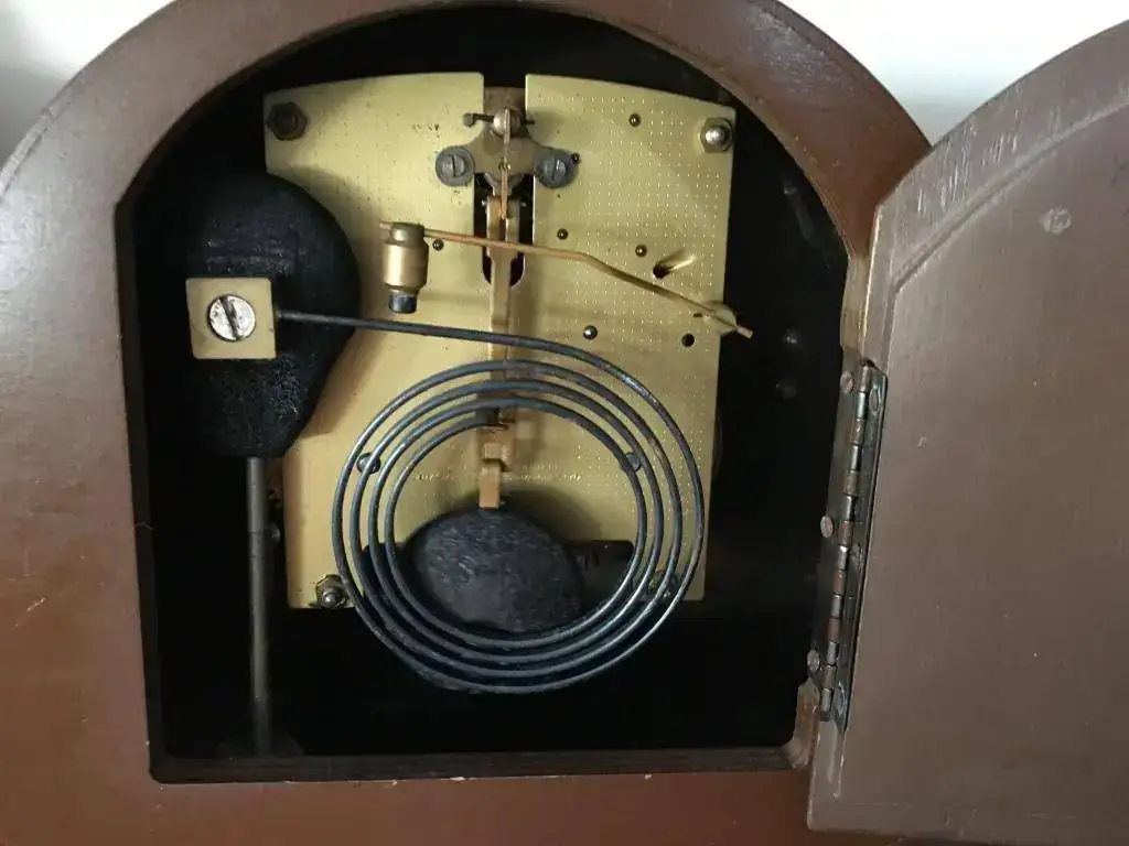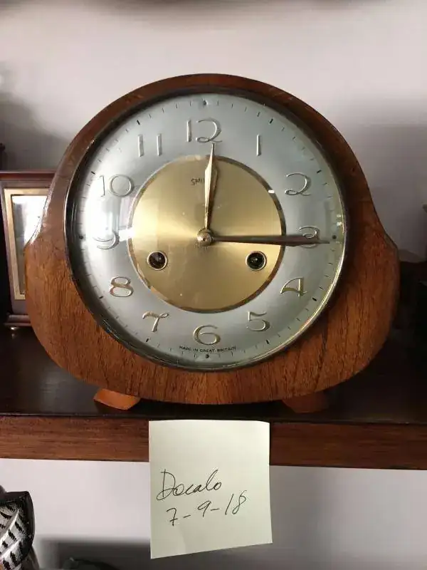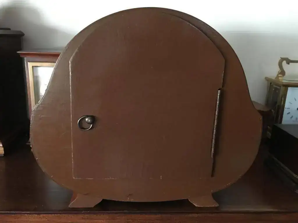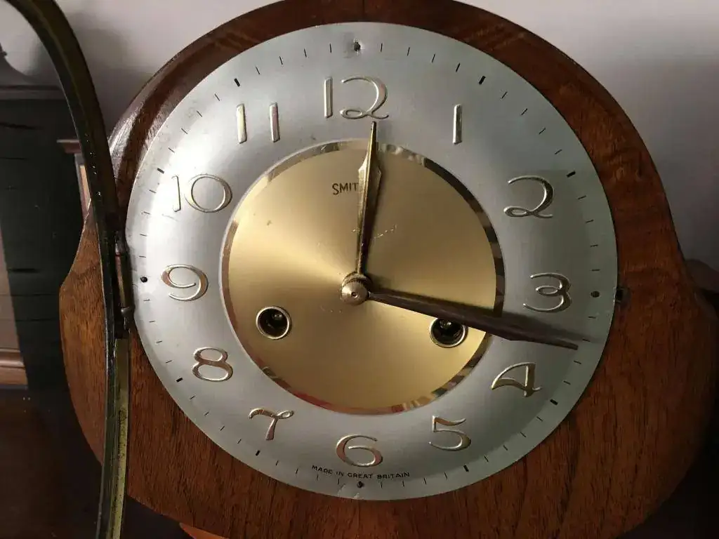 Fabricado en Reino Unido por Smiths en los años 50, maquinaria mecanica de cuerda de 8 dias con soneria sobre espiral en horas y medias, mueble en madera de roble, mide 20x22cm. maquinaria revisada, limpia y aceitada. 95€ envio incluido por mensajeria.