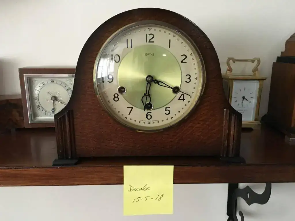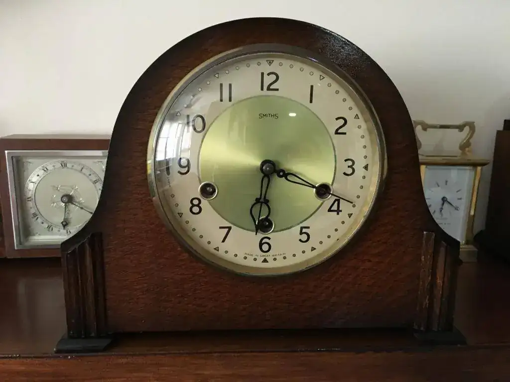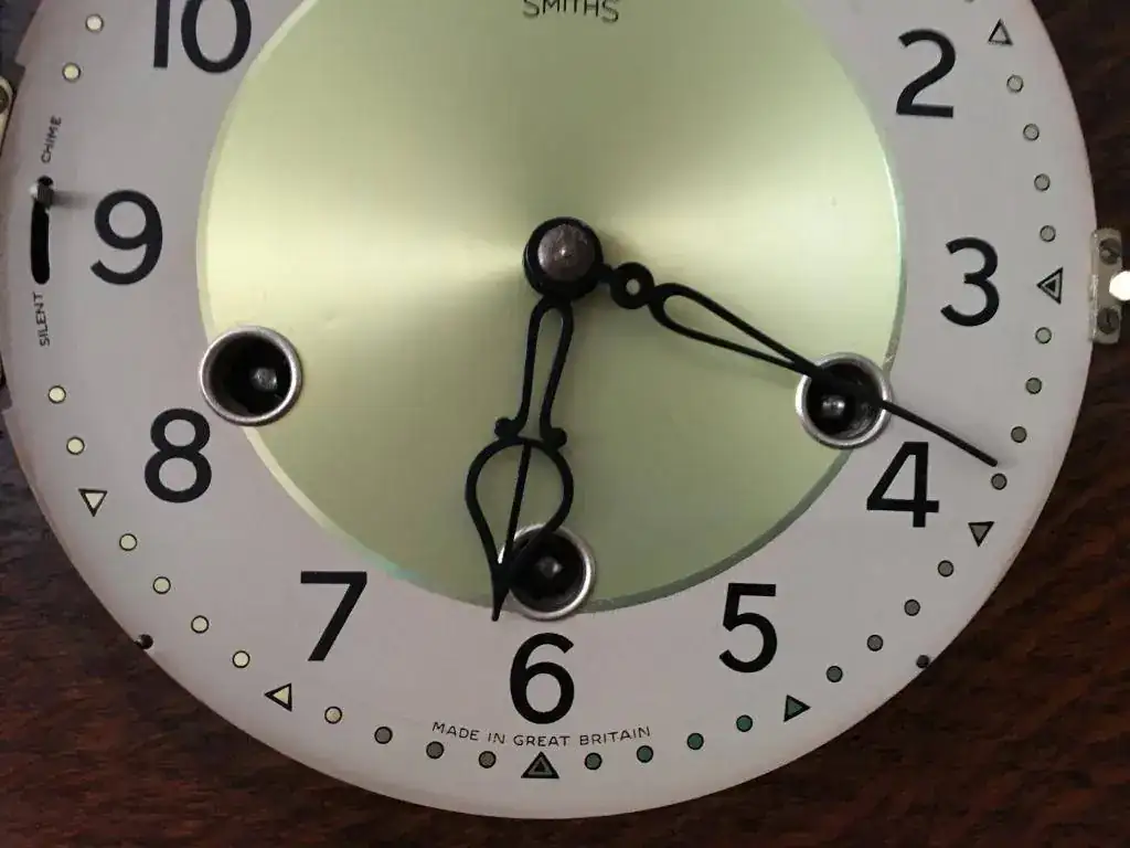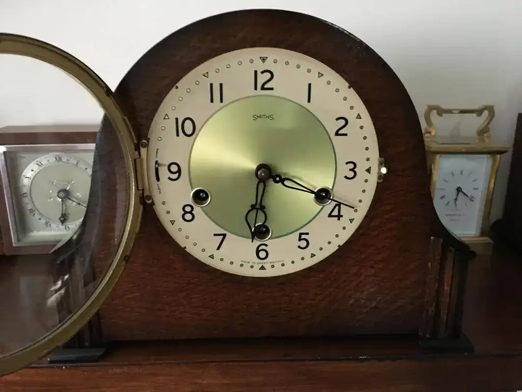 Reloj de sobremesa marca Smiths fabricado en los años 50 en Reino Unido. Maquinaria carrillon Westminster tocando todos los cuartos y las horas con la melodía Westminster, palanca de desconexion de la soneria en la esfera. maquinaria decorada con escape por pendulo, limpia y aceitada. Mide 29x23cm. Estado y funcionamiento excelente. 145€ envio incluido por mensajeria.
