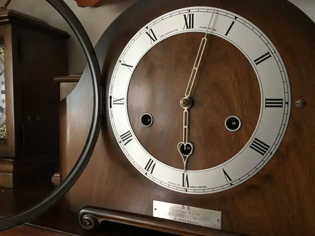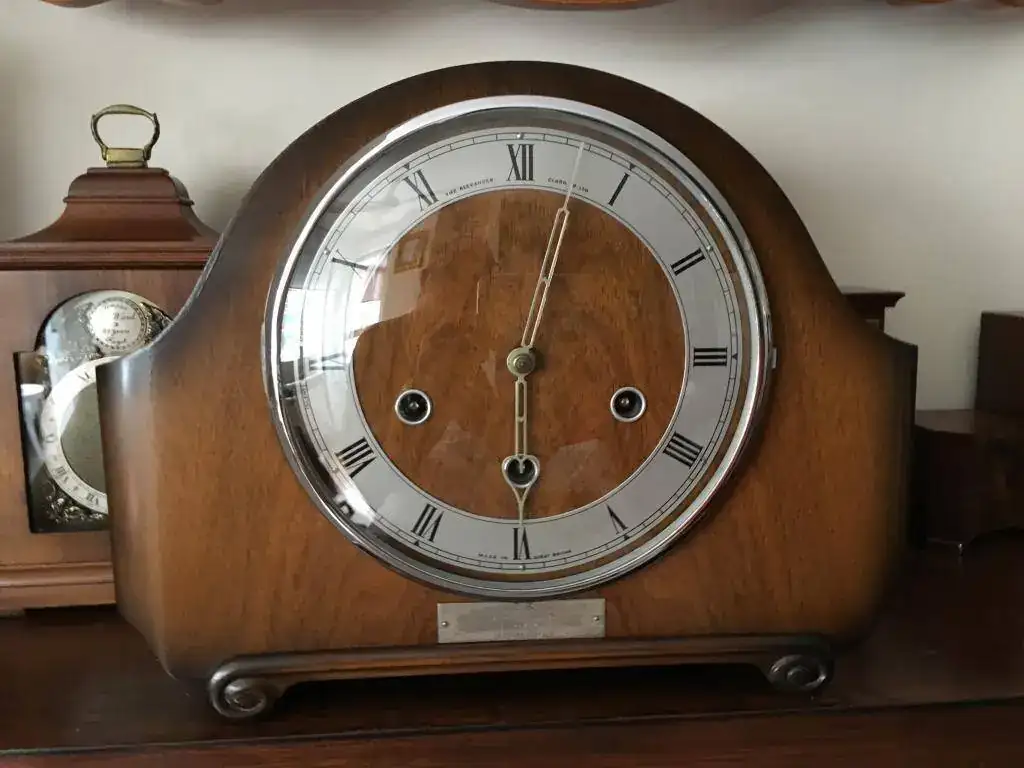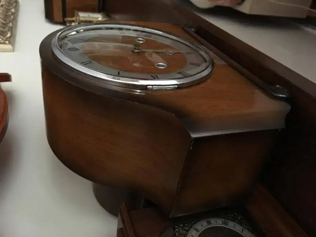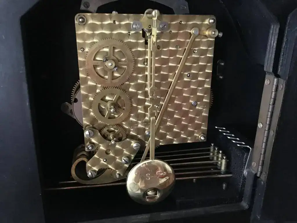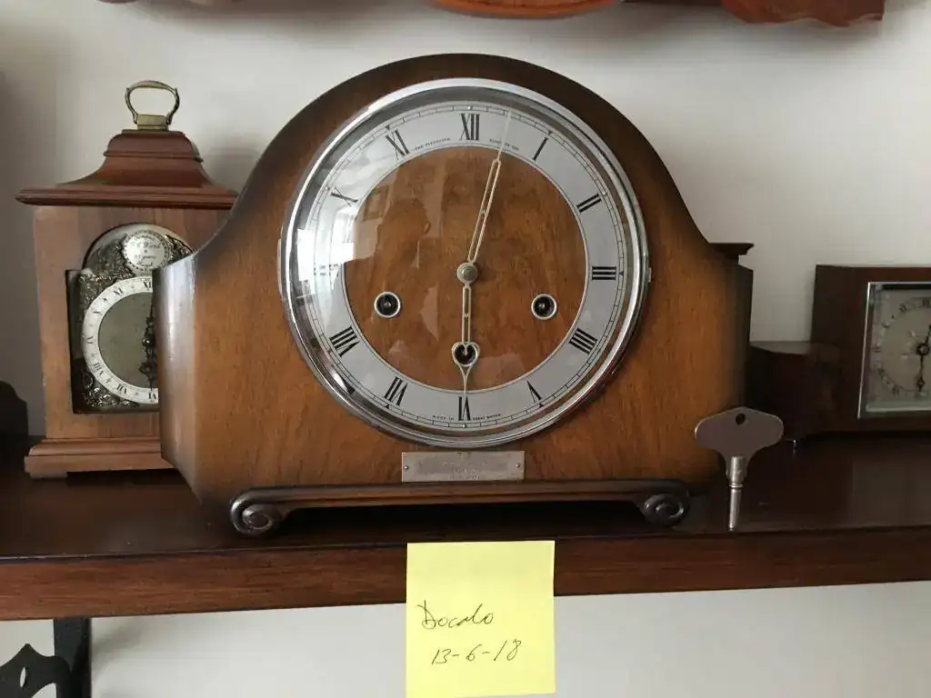 Reloj de sobremesa marca Smiths fabricado en los años 50 en Reino Unido. Maquinaria carrillon Westminster tocando todos los cuartos y las horas con la melodía Westminster, palanca de desconexion de la soneria en la esfera. maquinaria decorada con escape por pendulo, limpia y aceitada. Mide 31x24cm. Estado y funcionamiento excelente, llave original. 145€ envio incluido por mensajeria.
