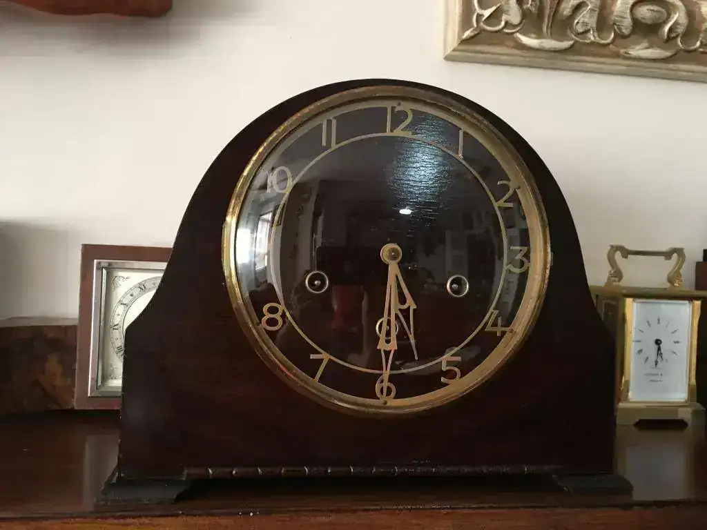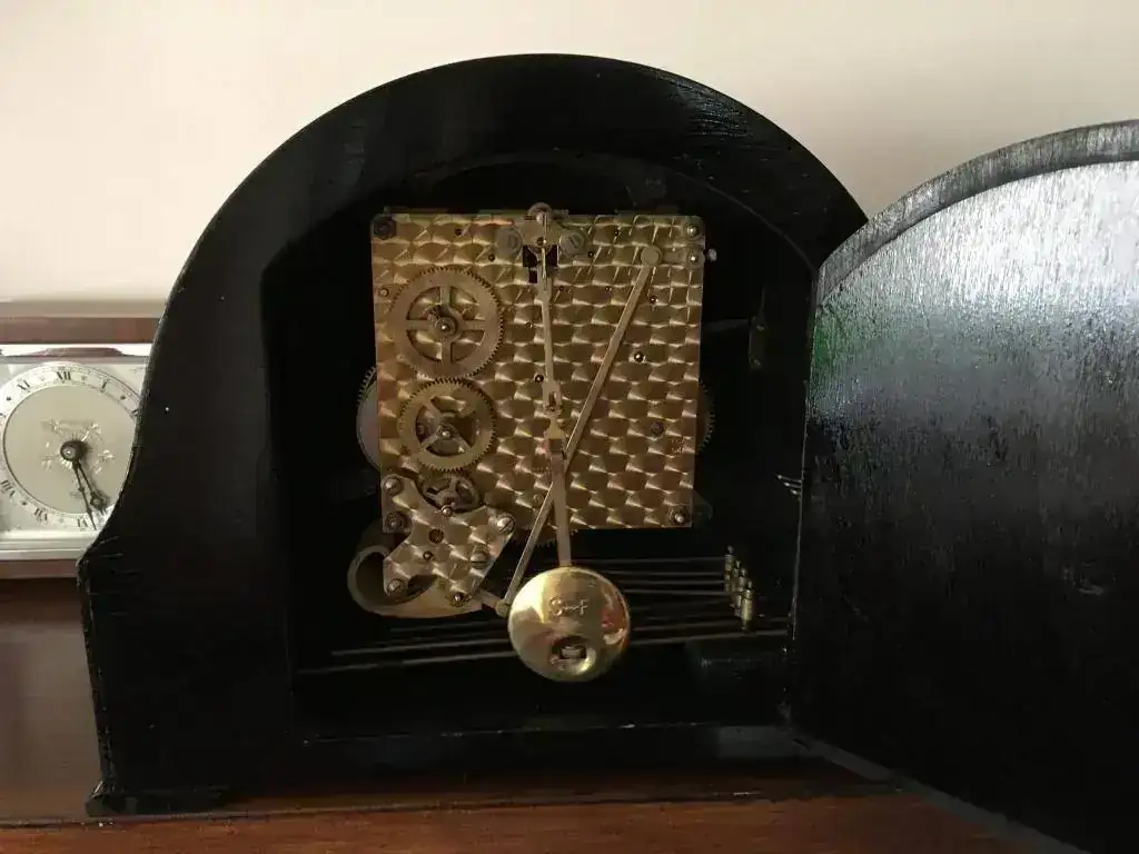 Reloj de sobremesa marca Smiths fabricado en los años 50 en Reino Unido. Maquinaria carrillon Westminster tocando todos los cuartos y las horas con la melodía Westminster, maquinaria decorada con escape flotante, limpia y aceitada. Mide 29x23cm. Estado y funcionamiento excelente. 130€ envio incluido por mensajeria.