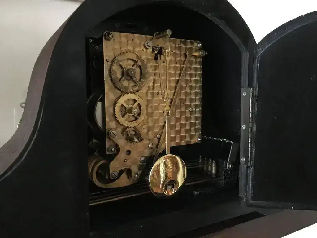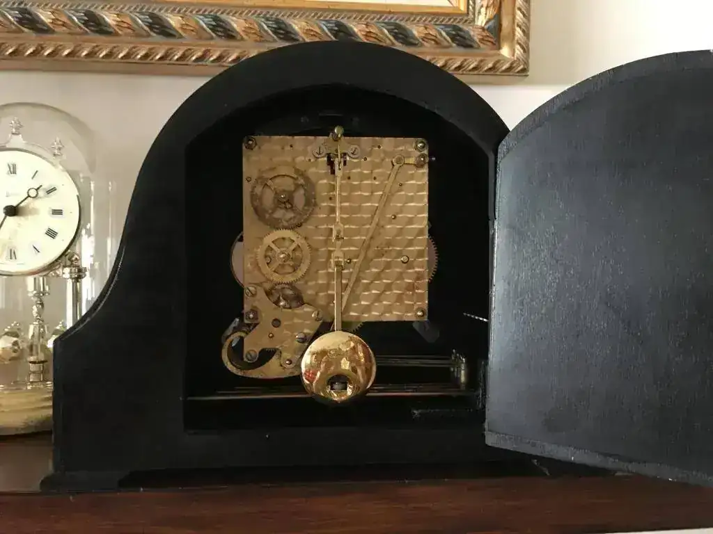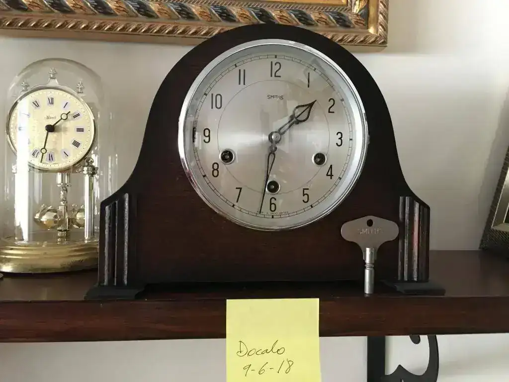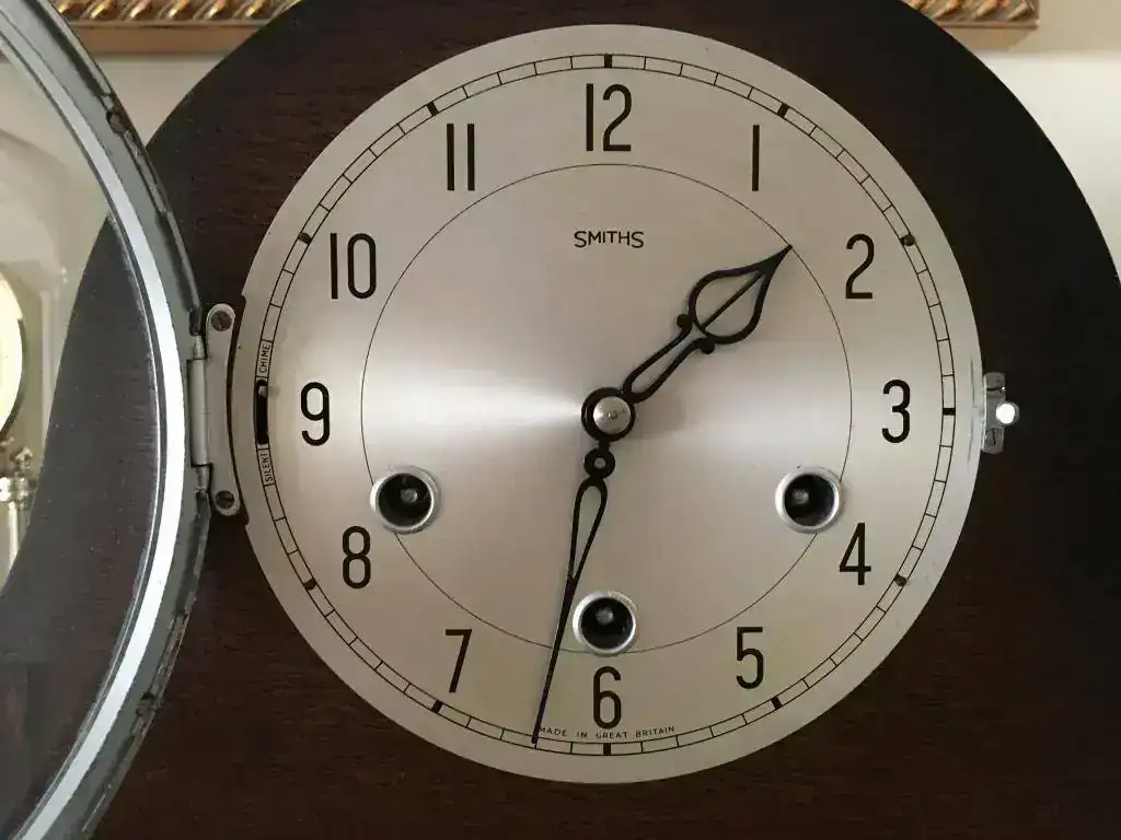 Reloj de sobremesa marca Smiths fabricado en los años 50 en Reino Unido. Maquinaria carrillon Westminster tocando todos los cuartos y las horas con la melodía Westminster, palanca de desconexion de la soneria en la esfera. maquinaria decorada con escape por pendulo, limpia y aceitada. Mide 30x22cm. Estado y funcionamiento muy bueno. 130€ envio incluido por mensajeria.
