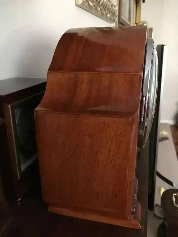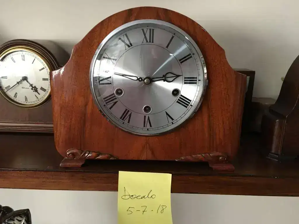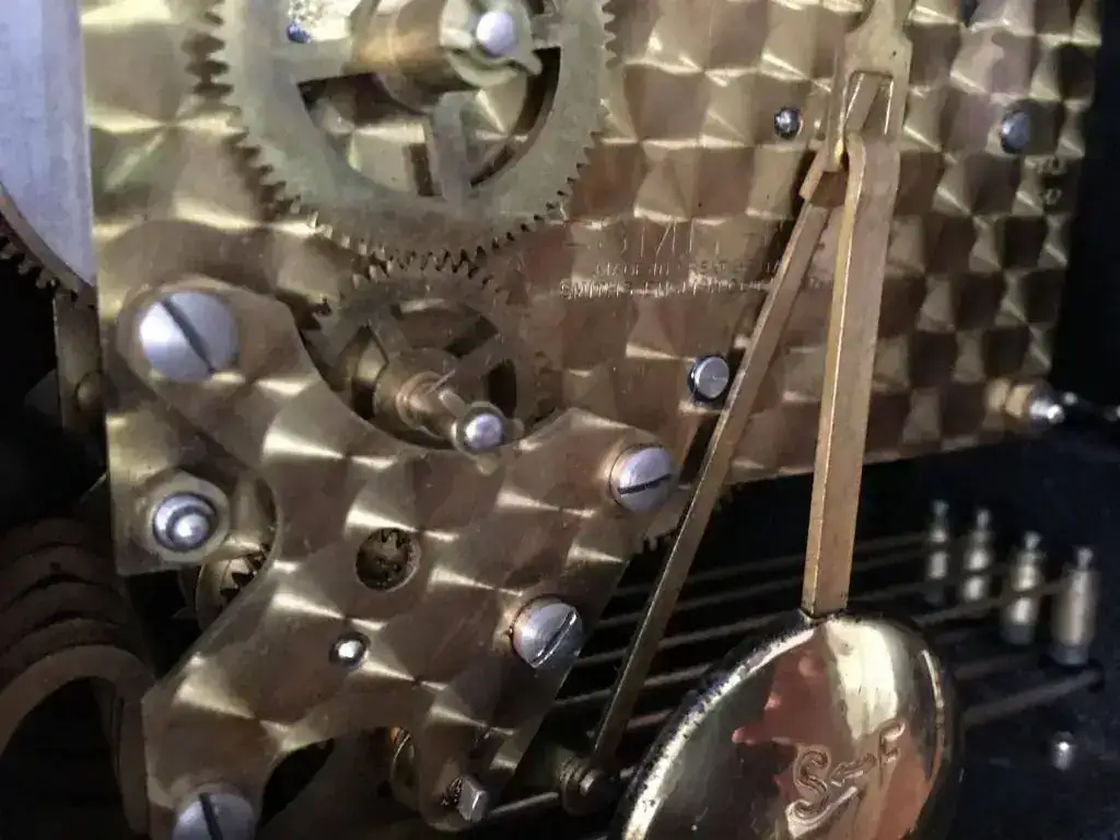 Reloj de sobremesa marca Smiths fabricado en los años 50 en Reino Unido. Maquinaria carrillon Westminster tocando todos los cuartos y las horas con la melodía Westminster, palanca de desconexion de la soneria en la esfera. maquinaria decorada con escape por pendulo. Mide 28x22cm. Estado y funcionamiento excelente. 130€ envio incluido por mensajeria.