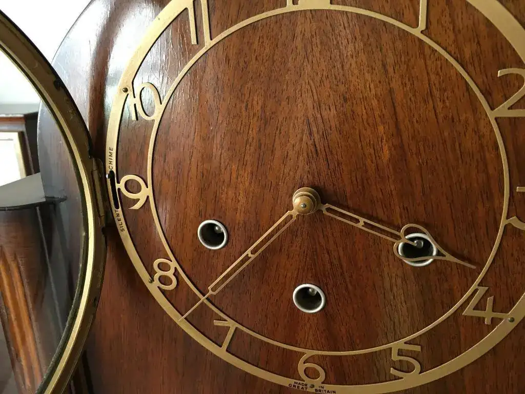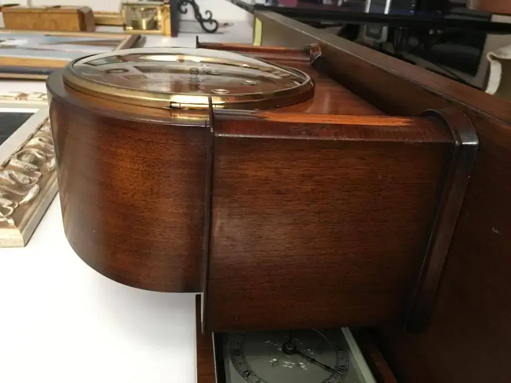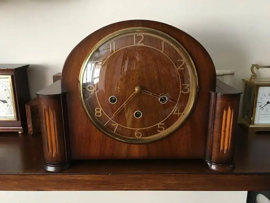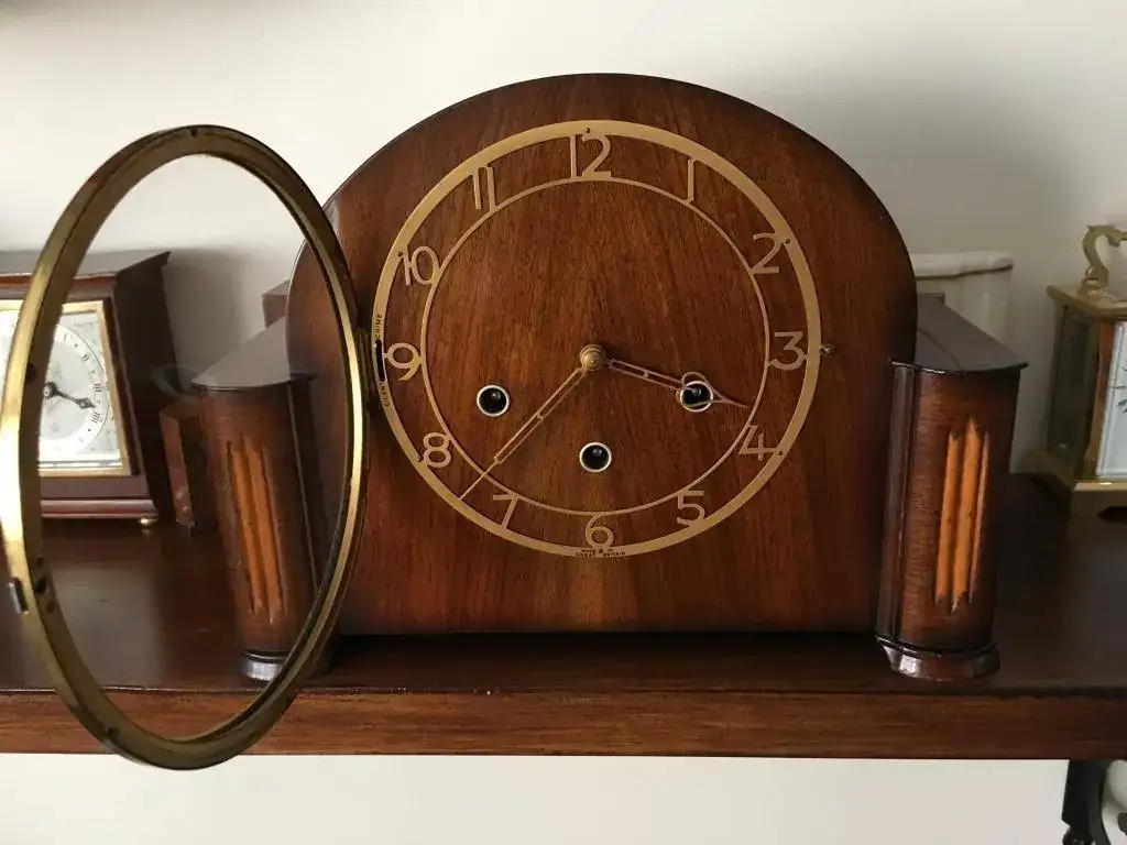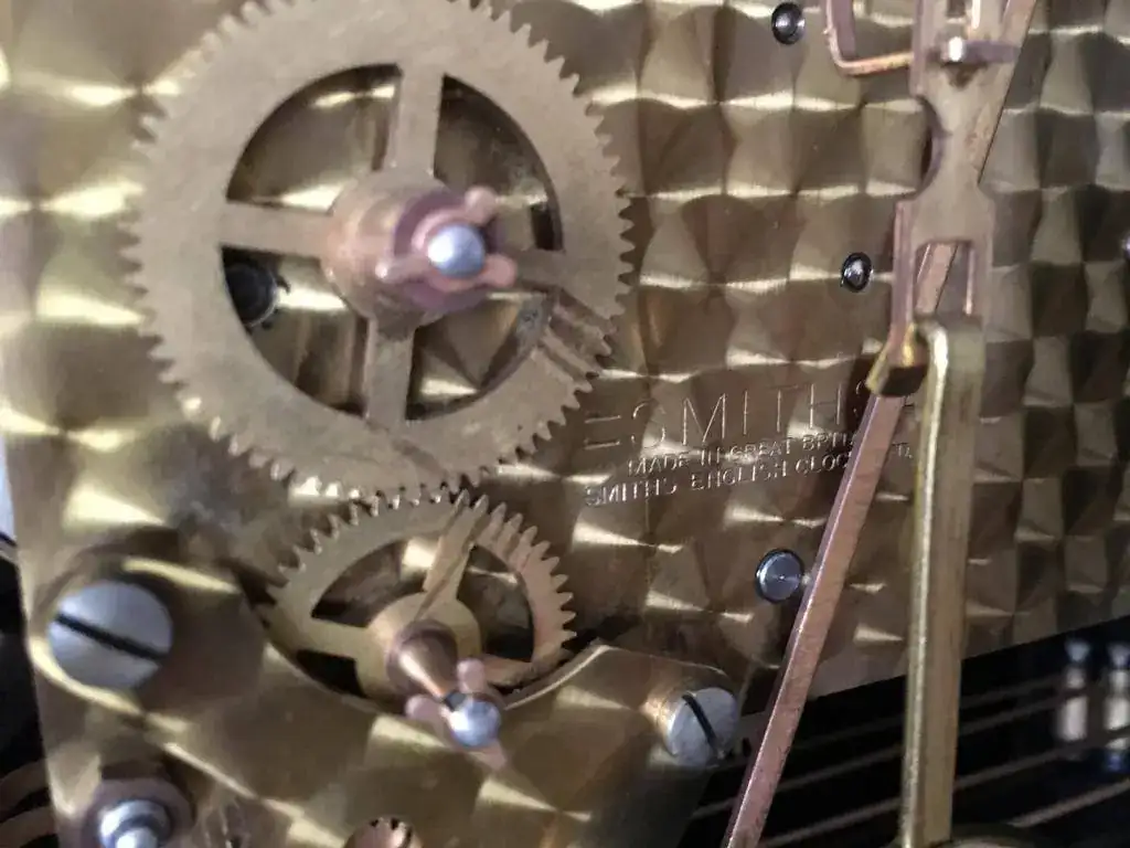 Reloj de sobremesa marca Smiths fabricado en los años 50 en Reino Unido. Maquinaria carrillon Westminster tocando todos los cuartos y las horas con la melodía Westminster, palanca de desconexion de la soneria en la esfera. maquinaria decorada con escape por pendulo, limpia y aceitada. Mide 32x24cm. Estado y funcionamiento muy bueno. 130€ envio incluido por mensajeria.