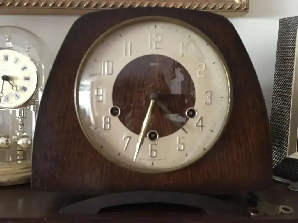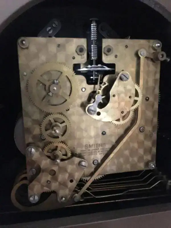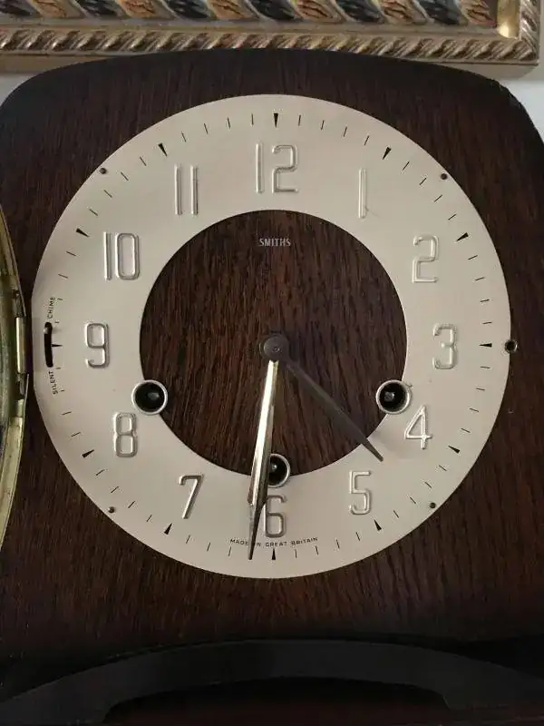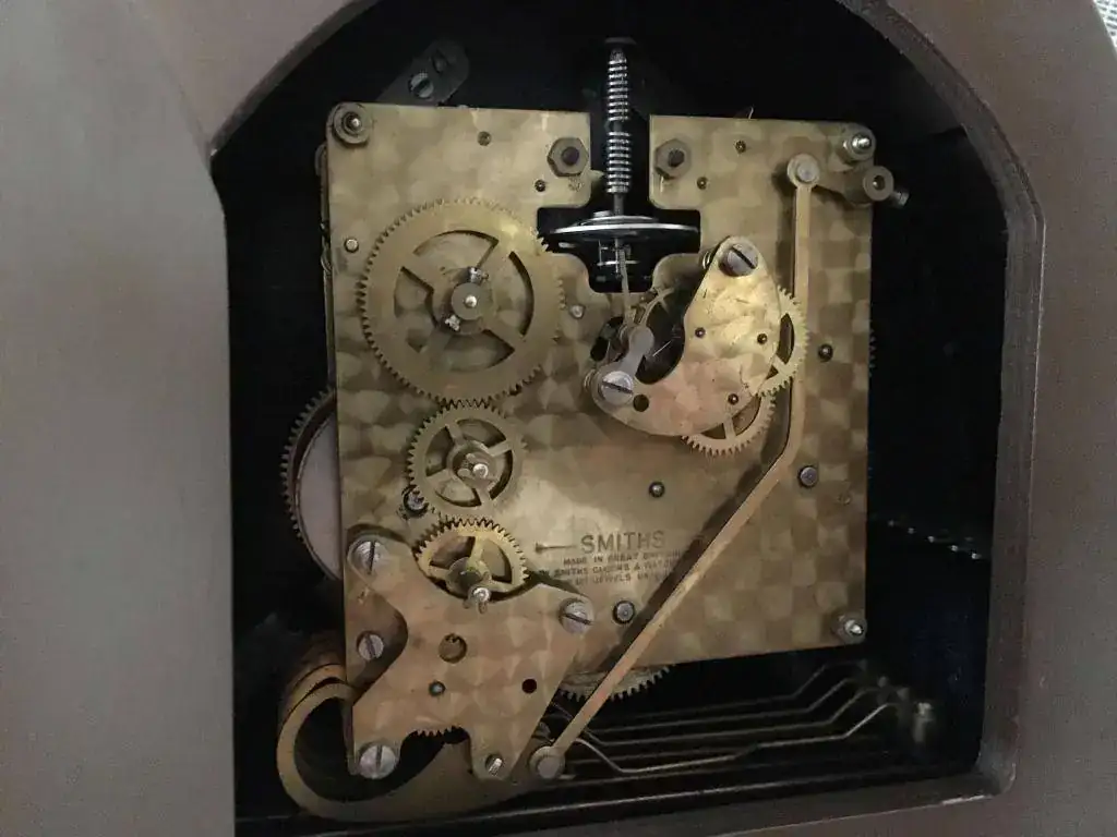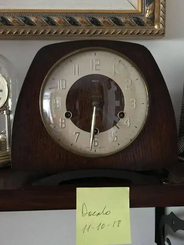 Reloj de sobremesa marca Smiths fabricado en los años 60 en Reino Unido. Maquinaria carrillon Westminster tocando todos los cuartos y las horas con la melodía Westminster, desconexion de la soneria en la esfera, maquinaria decorada con escape flotante, limpia y aceitada. Mide 25x21cm. Estado y funcionamiento excelente. 135€ envio incluido por mensajeria.