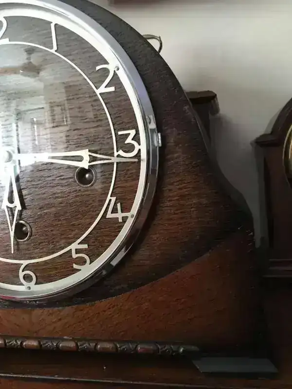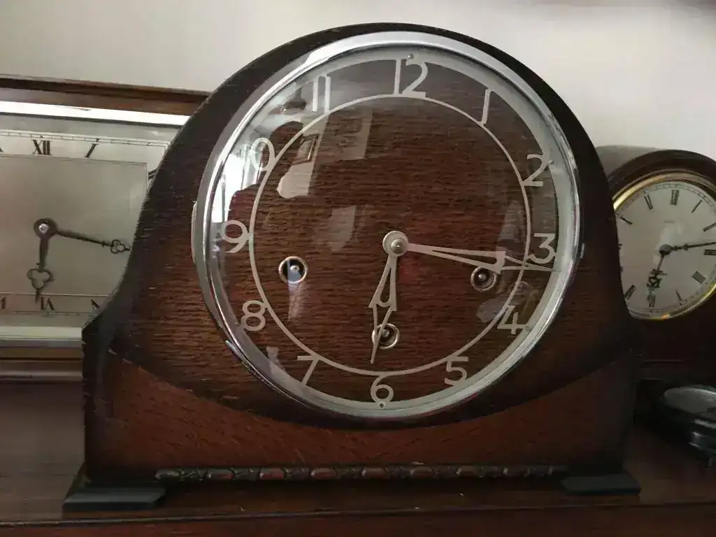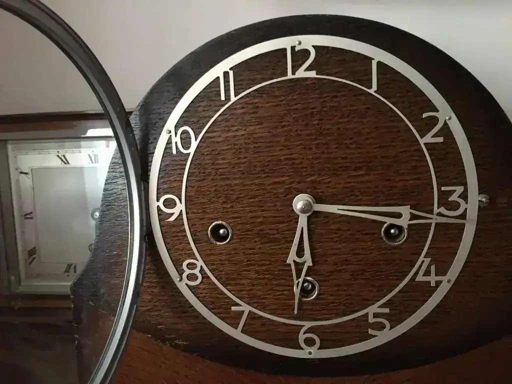 Reloj de sobremesa marca Smiths fabricado en los años 40 en Reino Unido. Maquinaria carrillon Westminster tocando todos los cuartos y las horas con la melodía Westminster. maquinaria decorada con escape por pendulo, limpia y aceitada. Mide 28x23cm. Estado y funcionamiento muy bueno. 115€ envio incluido por mensajeria.