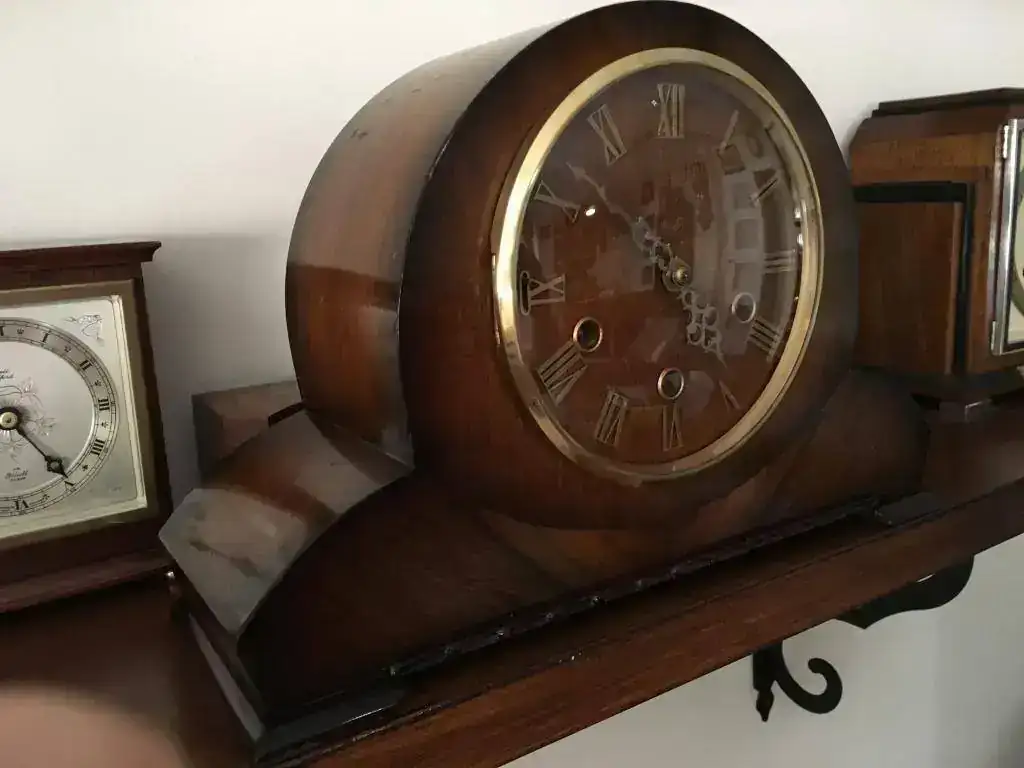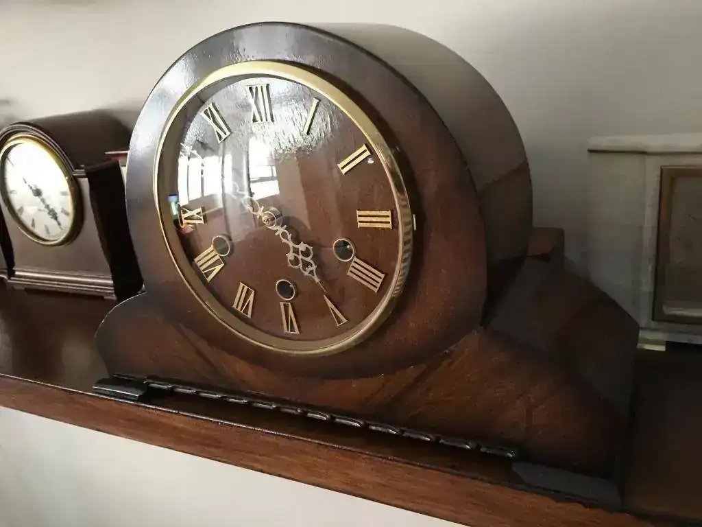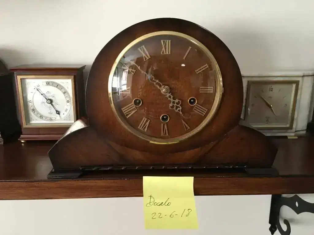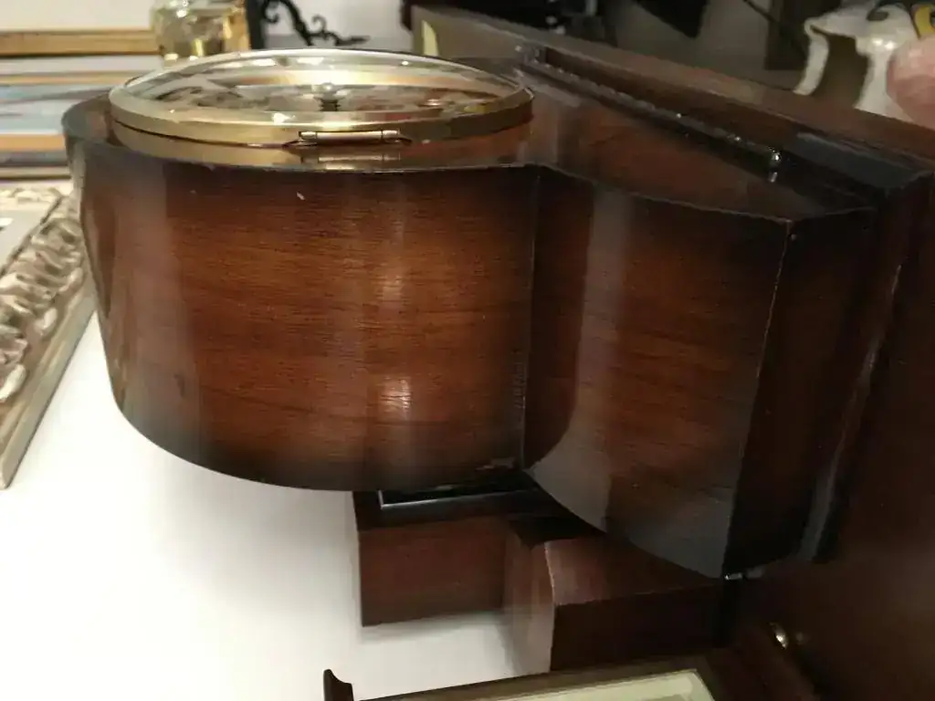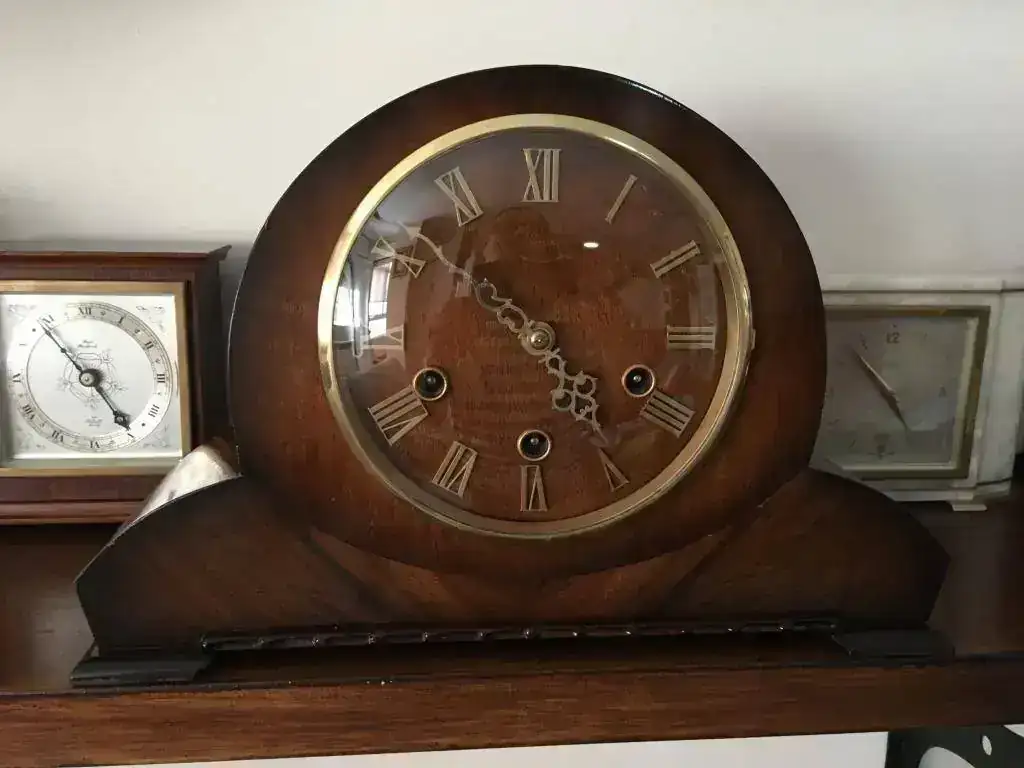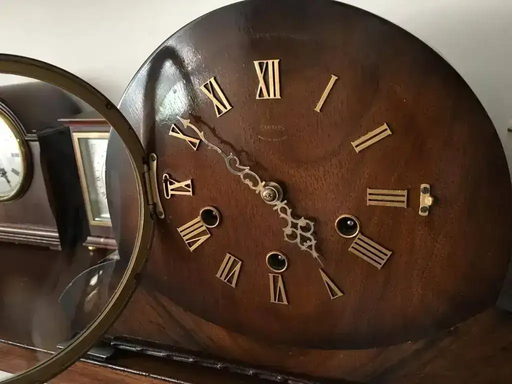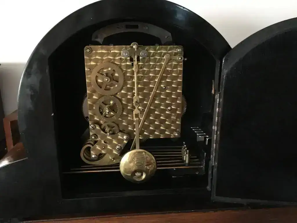 Reloj de sobremesa marca Smiths fabricado en los años 50 en Reino Unido. Maquinaria carrillon Westminster tocando todos los cuartos y las horas con la melodía Westminster, palanca de desconexion de la soneria en la esfera. maquinaria decorada con escape por pendulo, limpia y aceitada. Mide 35x22,5cm. Estado y funcionamiento excelente, llave original. 130€ envio incluido por mensajeria.