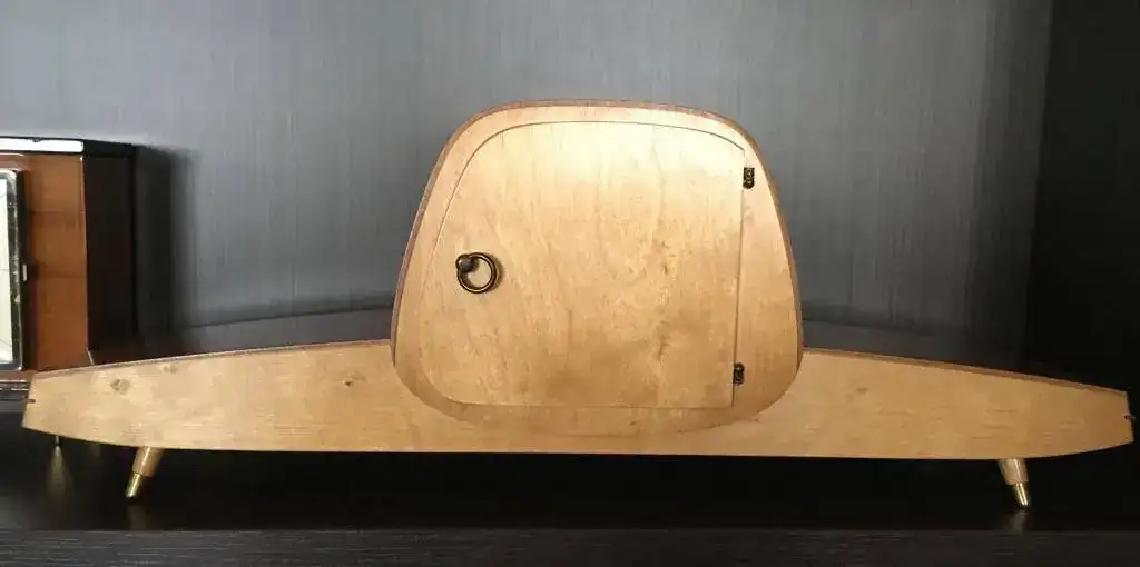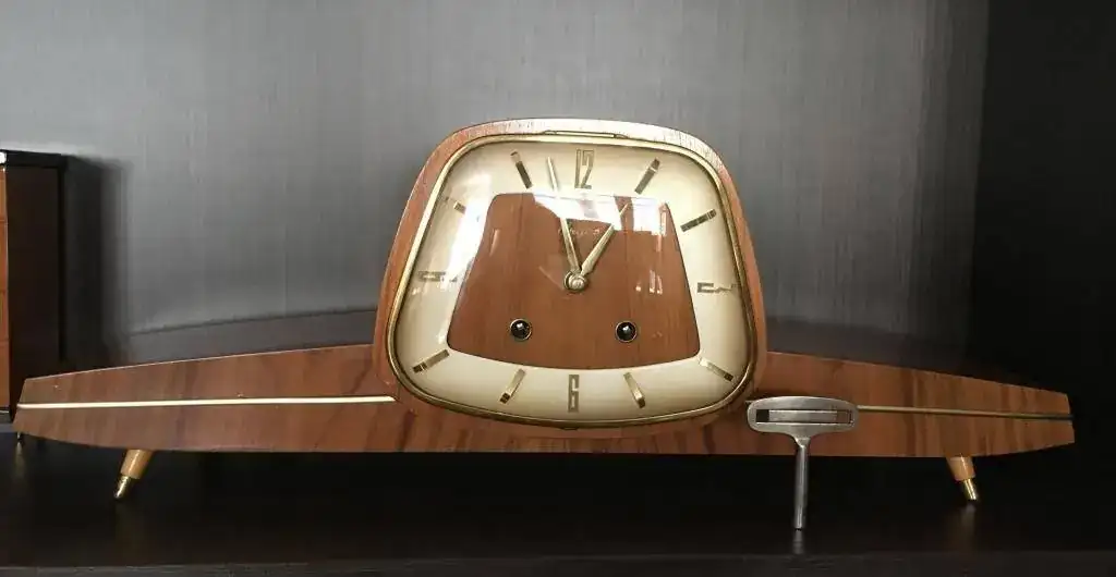 Reloj fabricado en Alemania en 1961, maquinaria mecánica de cuerda de 8 días con escape flotante y soneria sobre varillas. Estado excelente y funcionamiento perfecto. Mide 50x19cm, maquinaria limpia y aceitada. 95€ envio incluido por mensajeria.