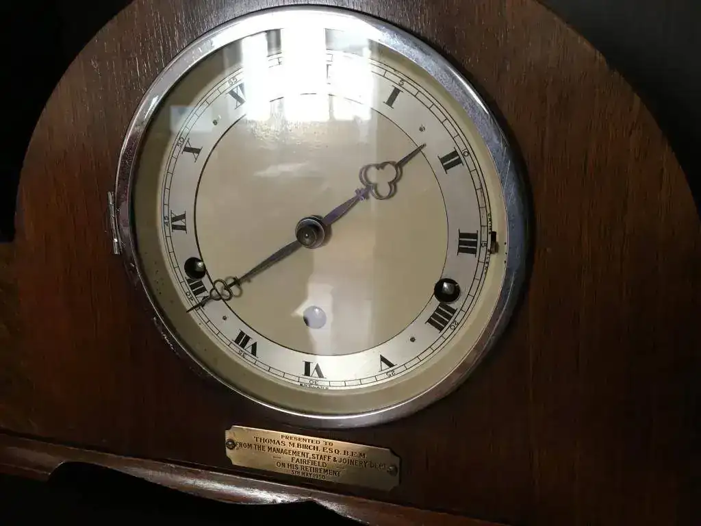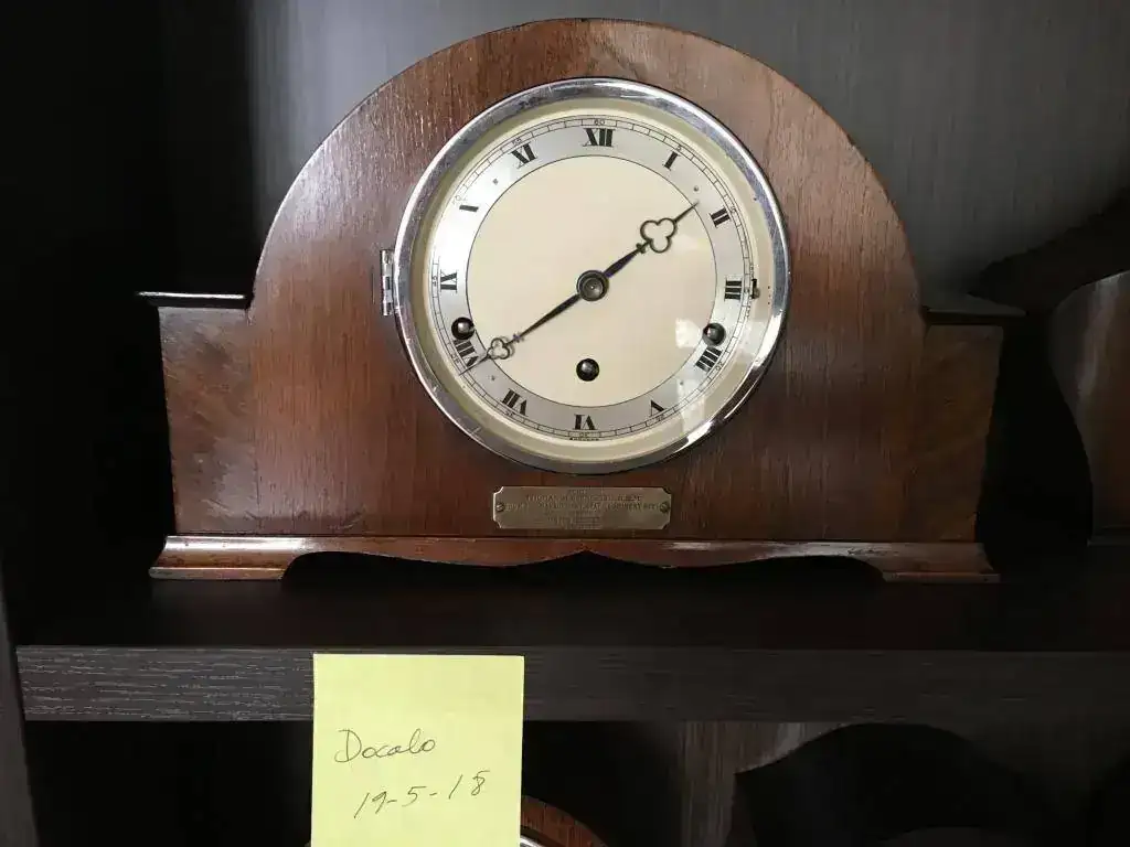 Reloj de sobremesa de la prestigiosa marca Elliott of London fabricado en los años 50 en Reino Unido. Maquinaria carrillon Westminster tocando todos los cuartos y las horas con la melodía Westminster, a excepcion de unas campanadas muy raras que da en las medias y que yo no he conseguido reparar, maquinaria decorada con escape por pendulo, limpia y aceitada. Mide 34x24cm. Estado y funcionamiento excelente, a excepcion del problema comentado. 99€ con el envio incluido. si no conoceis la marca, vale la pena hechar un vistazo en google para valorar su calidad. no dispongo de la llave.