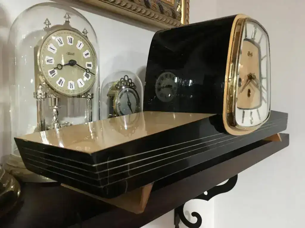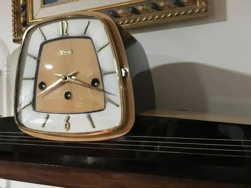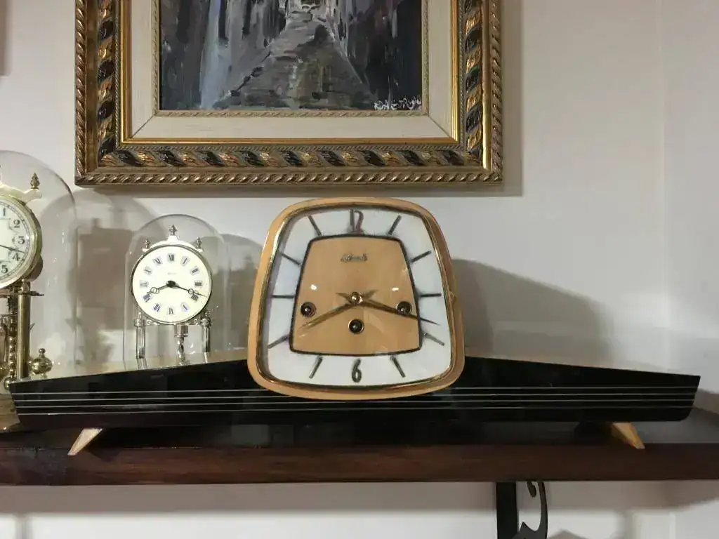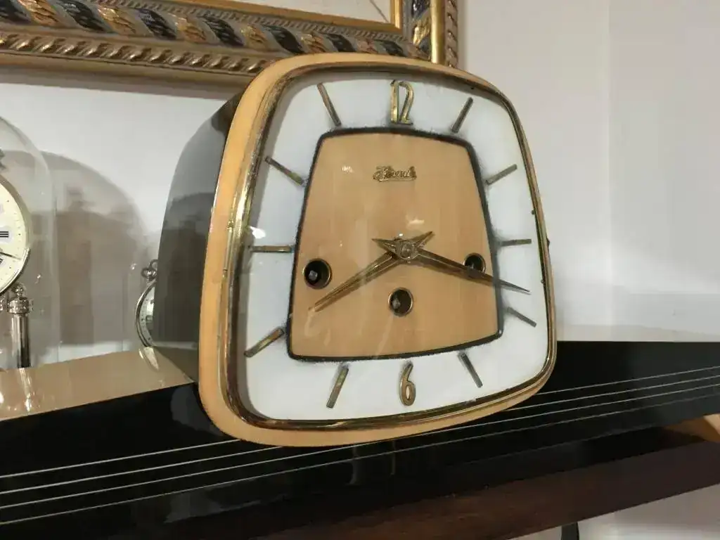 fabricado en Alemania en los años 60, maquinaria mecánica Hermle de cuerda de 8 días con escape flotante y soneria carrillon westmister sobre varillas. Dispositivo para desconexión de la soneria. Estado excelente y funcionamiento perfecto. Mide 59x22cm. Reloj revisado, maquinaria limpia y aceitada. 130€, envio incluido por mensajeria.