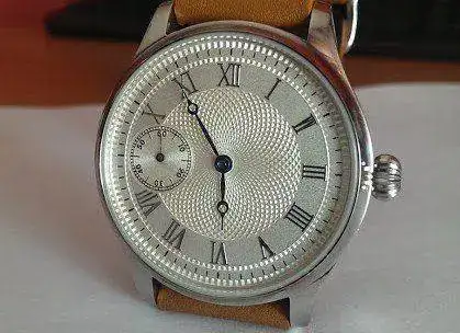 Esfera con acabado "guilloche",agujas tipo "breguet",corona a presión.