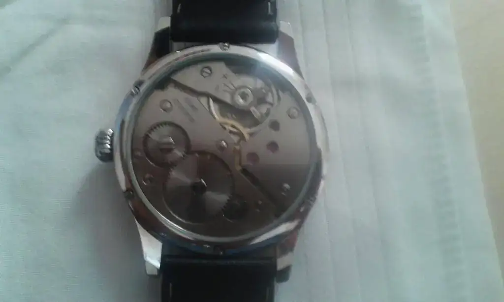 Caja de acero asiática de 43 mm.Fondo visto atornillado.Cristal mineral delante y detrás.Ancho entre asas,22 mm.En el interior un calibre Unitas Swiss Made 6497 que,él sólo,cuesta bastante más de lo que pido por el reloj completo si lo compras por internet.