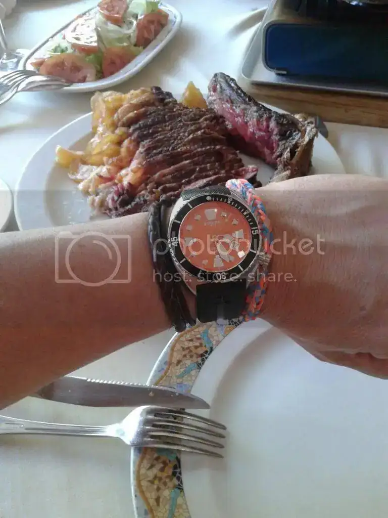 Hoy y con retraso repito el Zodiac un poco de buena carne de buey gallega, y la primera de las pulseras reglamentarias de mi sobrina,