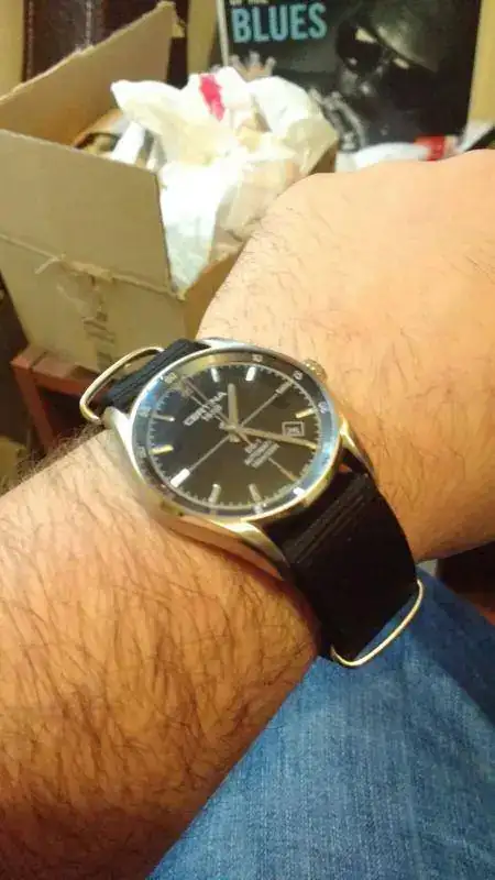 Hoy me ha llegado esta Nato de una oferta estúpidamente barata de Amazon, así que he decidido probarla con el Certina DS1, y le da un aire militar que si bien no me convence tampoco me desagrada.