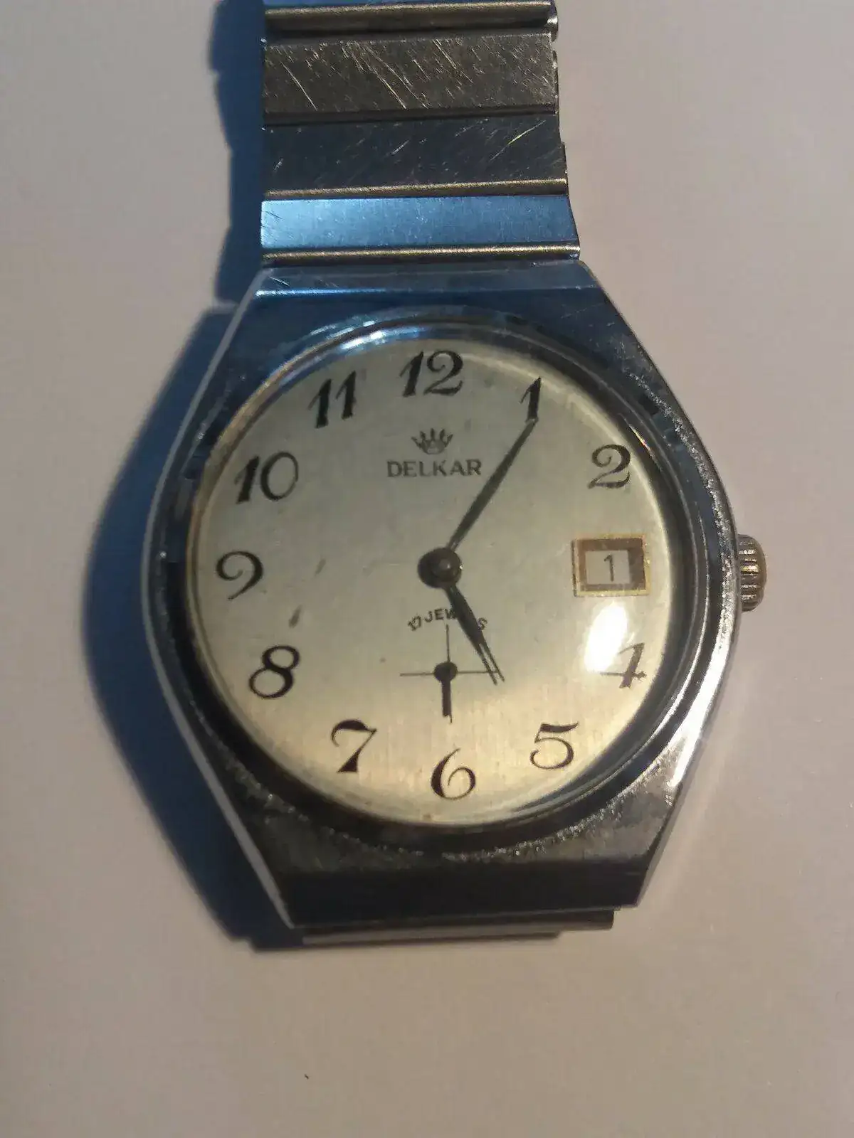 Pues pongo dos fotos de este “Delkar” del que no sé nada de él, mas alla de que fue el reloj de comunión de una familiar, hace mas de 30 años, y que muy, muy, muy bien no ha sido tratado.