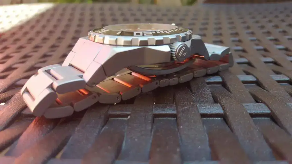 Nunca lo he bañado, reparado, o abierto, el estado diría que es casi como nuevo salvo pequeñas marcas en el lado del cierre...es un reloj que he mimado mucho a pesar de su bajo precio ya que me gusta mucho, pero como siempre hay que darle vueltas a la colección para que no se convierte en un a locura. Comentar que la caja de cartón roja se despega con mucha facilidad ya la pegué una vez....y eso que es nueva, se ve que usan una cola mala que no resiste a los calores de aquí jeje