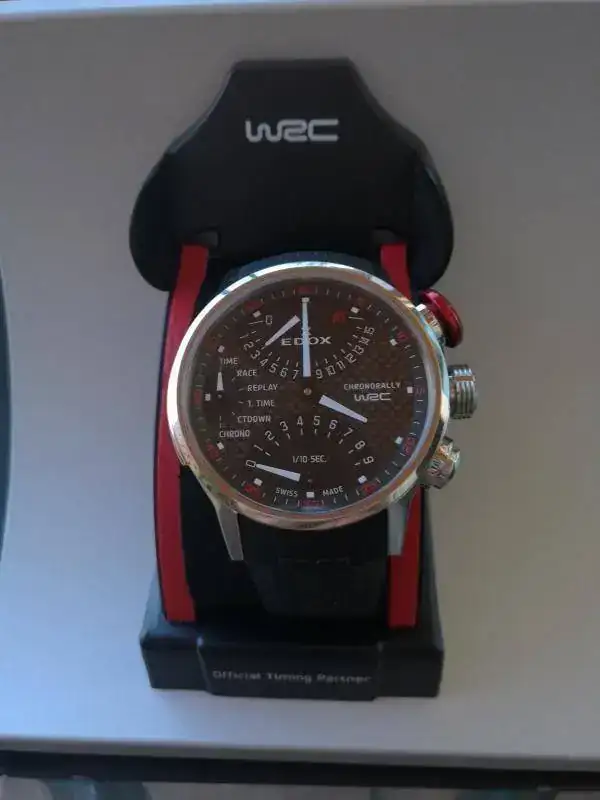 Esta maravillosa pieza fue creada exclusivamente para el mundial de rallys, tiene cuenta atrás, guarda hasta 15 tramos cronometrados, cronometrador oficial de la wrc y patrocinador oficial del equipo sauber de F1.
