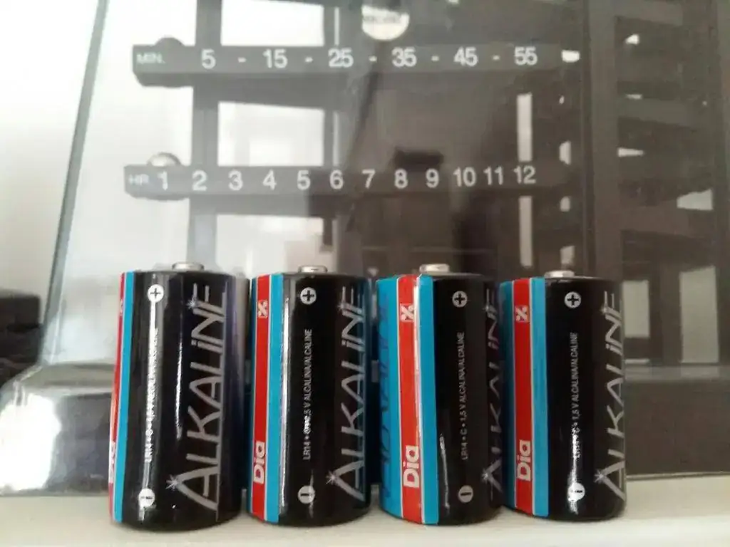 El reloj funciona con un motor eléctrico interno que se enchufa a la red mediante un transformador, que incluyo como no puede ser de otra forma. También admite 4 pilas convencionales LR14 de 1.5V, que no incluyo, y de hecho no he probado si va con las pilas, pero enchufado va perfecto y mantiene la hora exacta.