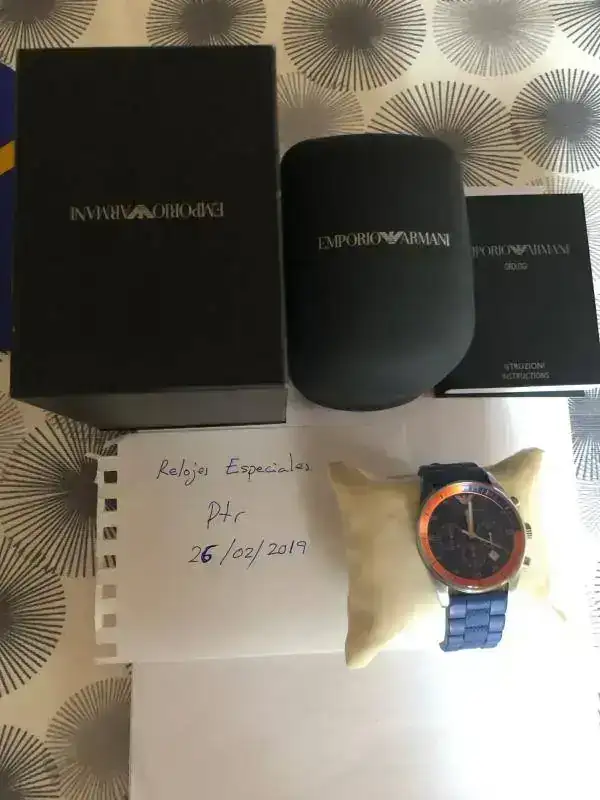 En este caso es un Reloj Emporio Armani 42mm de caja, con todas sus agujas funcionales, correa cauchio en muy buen estado . Reloj muy cuidado y poco puesto debido al gran numero de piezas en mi caja