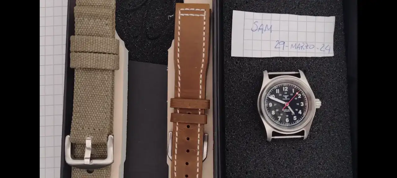 Lo envío con la correa de piel original y una correa textil tipo canvas militar, ambas a estrenar.