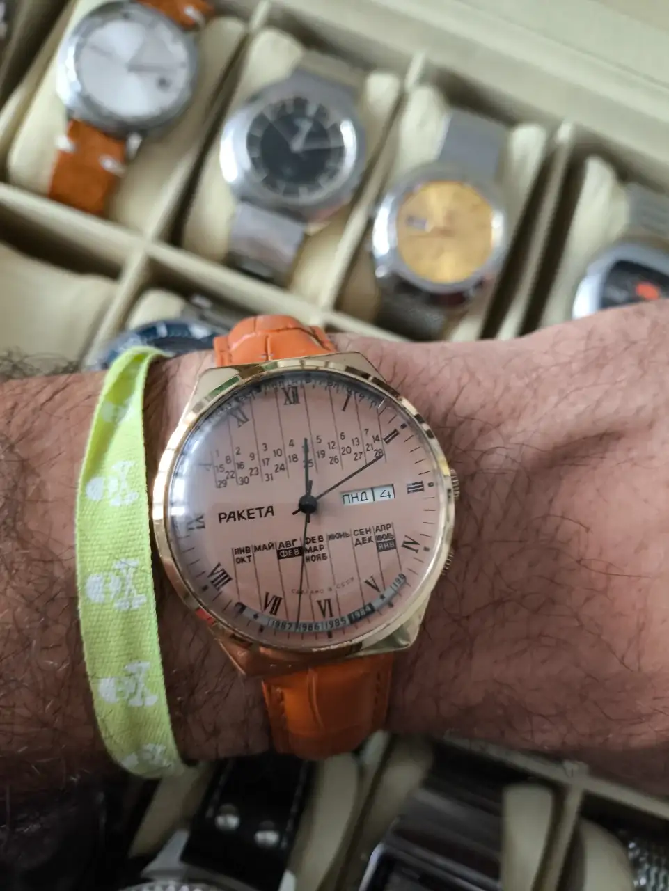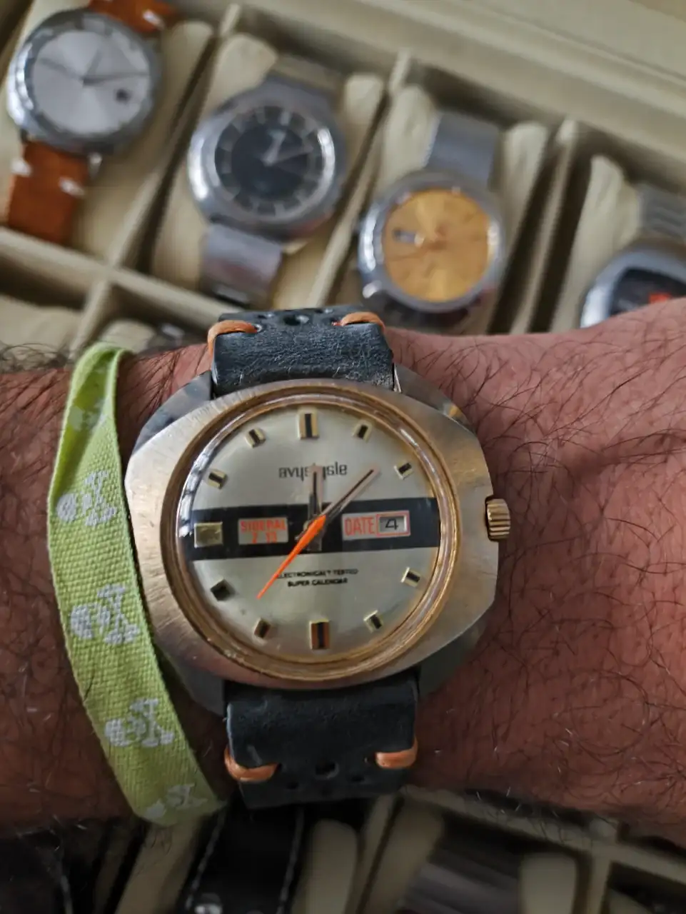 Dan muchísimo juego en cuanto a las posibilidades de correas. Aquí el mío con una correa nueva verde: