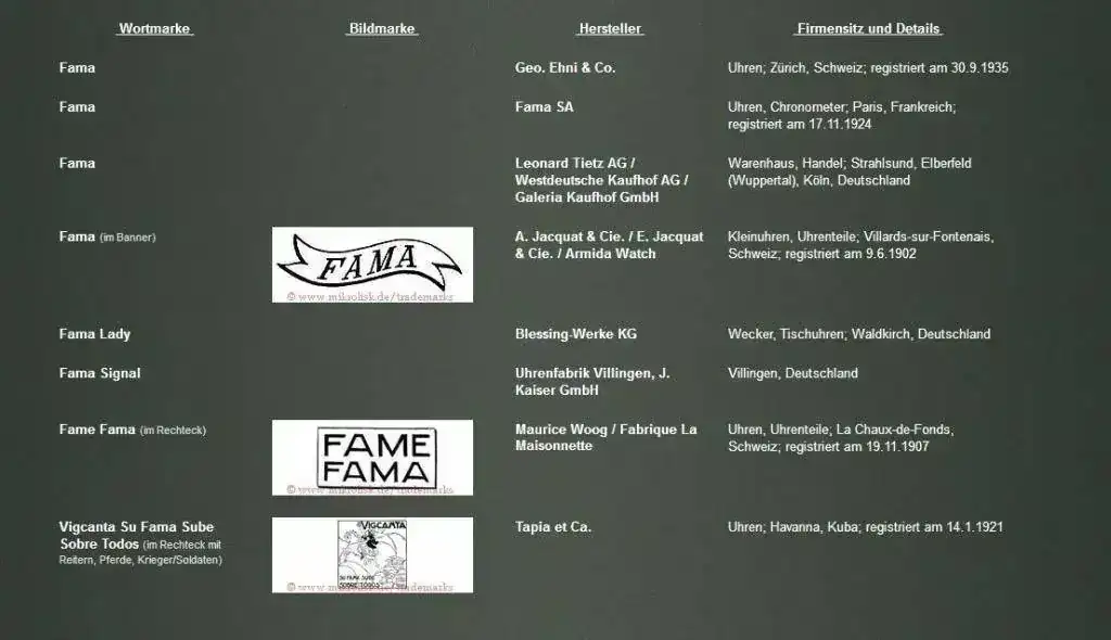 pero no se mucho de el solo dice (FAMA)en su esfera y la caja es de plata lo estuve controlando y se atrasa 4 minutos al día,al interior en su maquina de cuerda se aprecia el "swiss made" 15 jewells pero no se nada mas su año aproximadamente o algo especifico de la marca que nunca había escuchado de ante mano muchas gracias. aquí adjunto unas fotos.