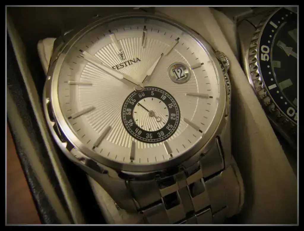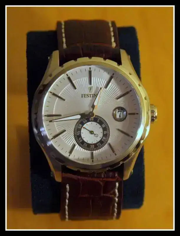 Vendo este reloj FESTINA que me ha sorprendido mucho en cuanto a apariencia y calidad. Cristal impoluto y caja con leves marcas de uso. Tiene en la tapa trasera grabado un nombre y una fecha,