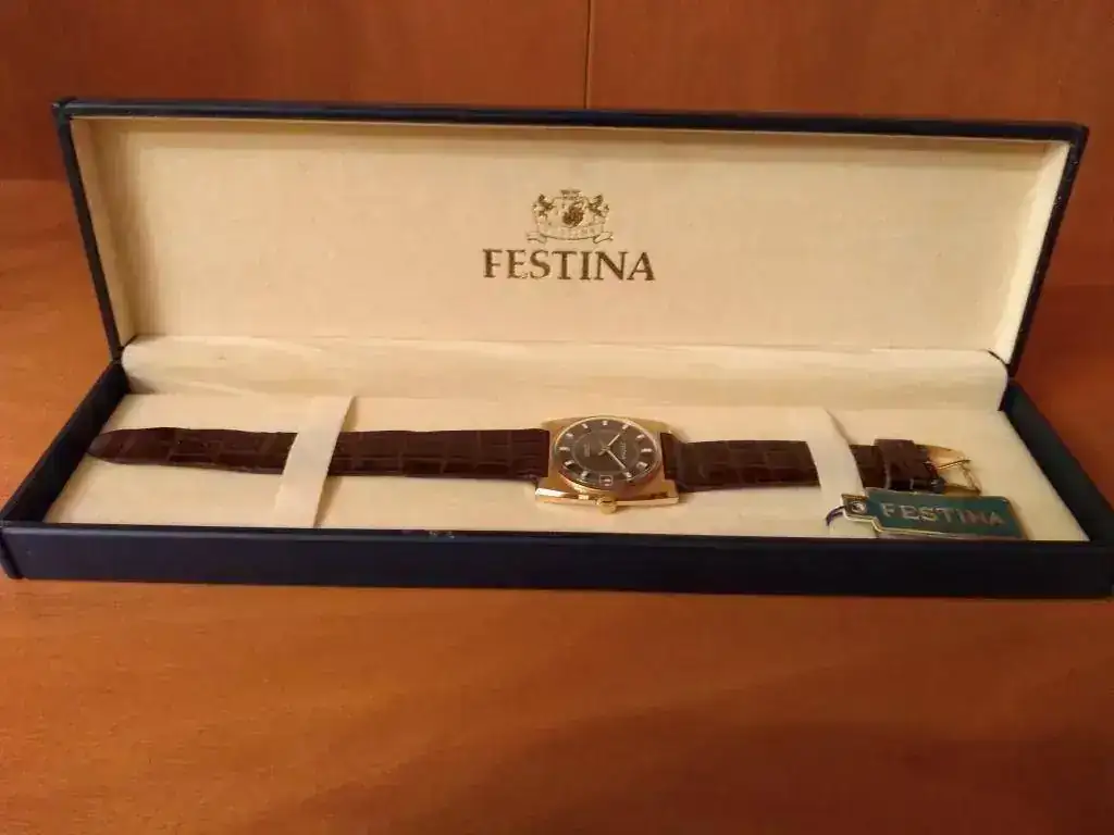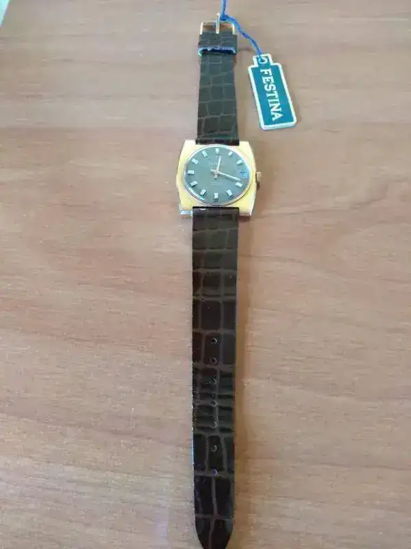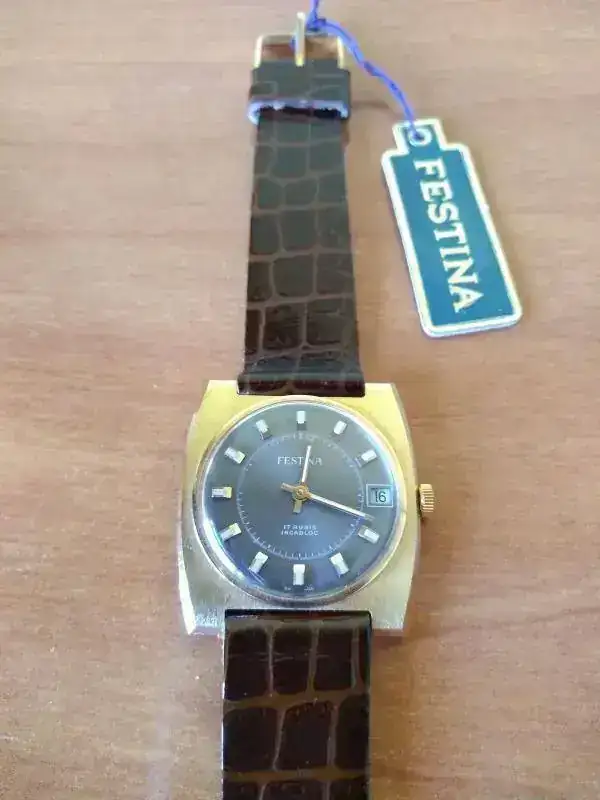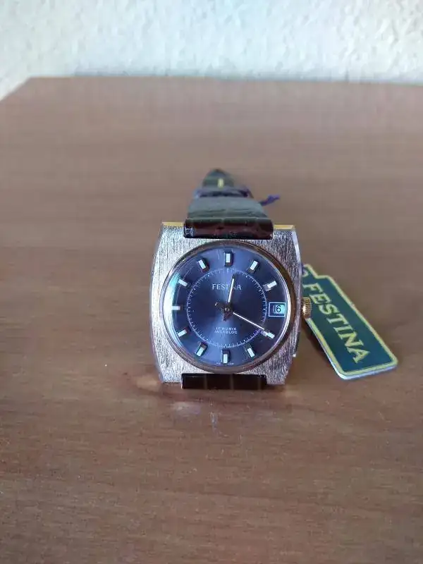 Saco a la venta con todo el dolor de mi corazón este bellísimo reloj Festina de 17 jewels de cuerda en estado NOS nuevo sin uso ninguno comprado en una relojería que cerró por jubilación se encuentra en perfecto estado sin ninguna señal ni rasguño con etiqueta en tapa trasera de Festina etiqueta Festina con precio en pesetas y con su estuche Festina decir que funciona perfectamente caja dorada preciosa y dial bellísimo color gris antracita con calendario a las 3 no tiene pase rápido cambia la paso de las 24h.