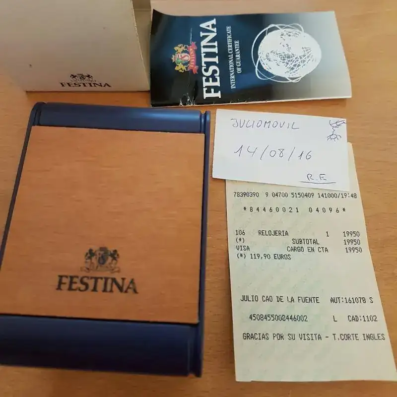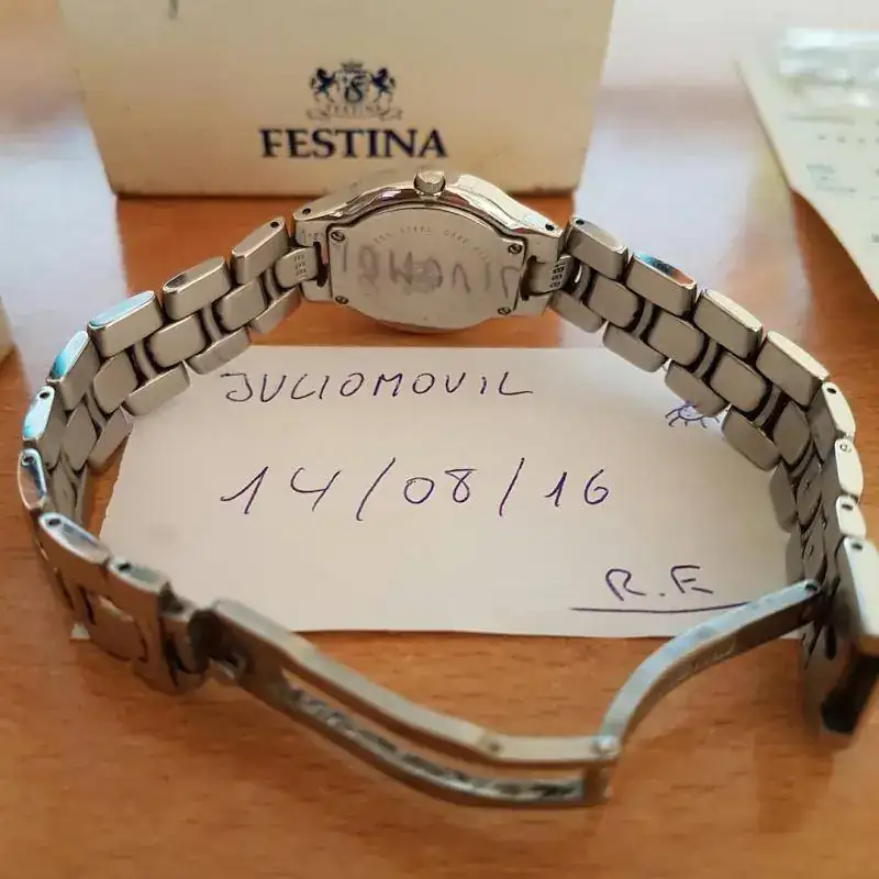pues nada lo comentado en un estado de uso como se puede ver en las fotos este reloj de mujer de marca festina completo tiene asta el tiquet de compra del corte ingles 45€ aqui unas fotos envio incluido.
