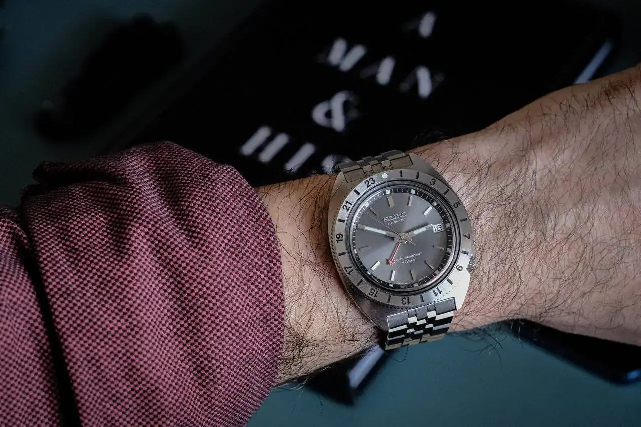 Pués la verdad es que es muy chulo. Me gusta mucho el diseño de esos años y el color y medidas encajan (un poco grande con 40.8, pero un lug to lug contenido.Mi propuesta es este Seiko Presage GMT SSK009J1, es una opción con calibre de manufactura y lo tienes en varias combinaciones de colores. Emo, tiene un diseño muy equilibrado, aunque con un carácter muy marcado de los 60s.