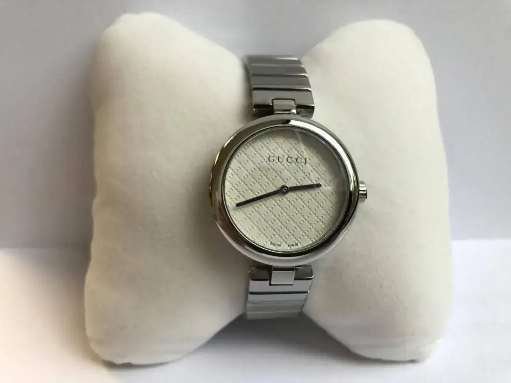 Pongo a la venta este reloj de Gucci, se lo regalaron a mi mujer,pero nunca lo ha usado. La esfera es beige muy claro.