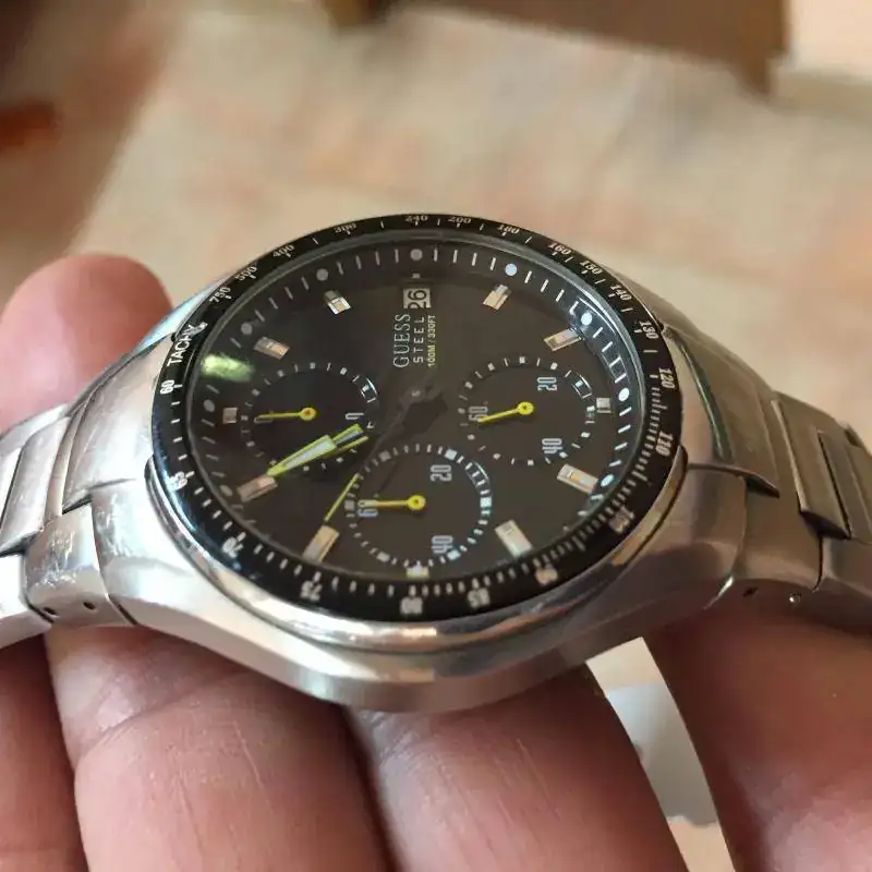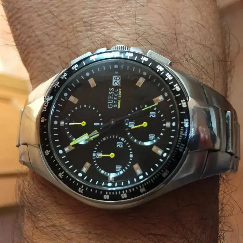 Ell reloj esta en buen estado y funciona perfecto, eso si, con las marcas del uso en el armis.