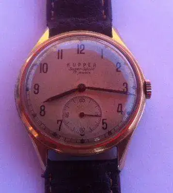 Hola amigos nuevamente me pongo en vuestras manos a fin de que me ayudéis a conocer algo de la Marca de relojes Kupper, nada consigo averiguar, os mando unas fotos que os puedan ayudar a ello. Como veréis monta un calibre de marca conocida y parece ser que famosa.