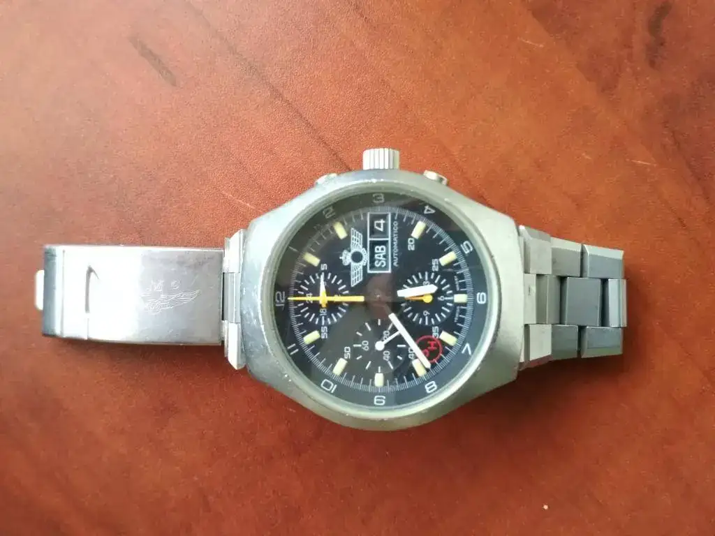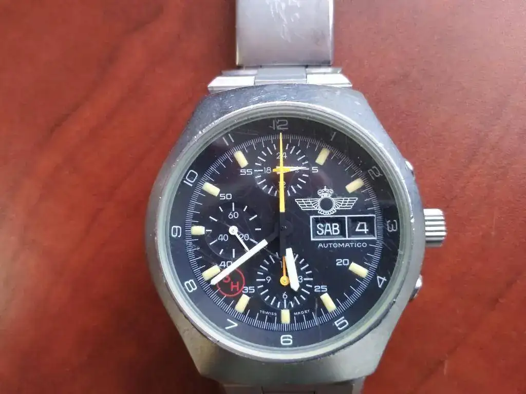 ha llegado a mis manos un reloj que entregaban de dotación a los pilotos del Ejército del Aire en los 80 y 90, hasta que dejaron de mantenerlo en las Maestranza Aérea de Madrid. No lo tenían en propiedad y había lista de espera; cuando había uno disponible de los 400 adquiridos, se lo asignaban (luego tenían que devolverlo, no sé si al dejar de volar, por pase a la reserva, excedencia o qué). El que os presento perteneció finalmente a un piloto de F-18, después de pasar por varias manos antes. Esto explicaría que no esté muy bien cuidado. Algunos dicen que los fabricaba Omega, no sé.