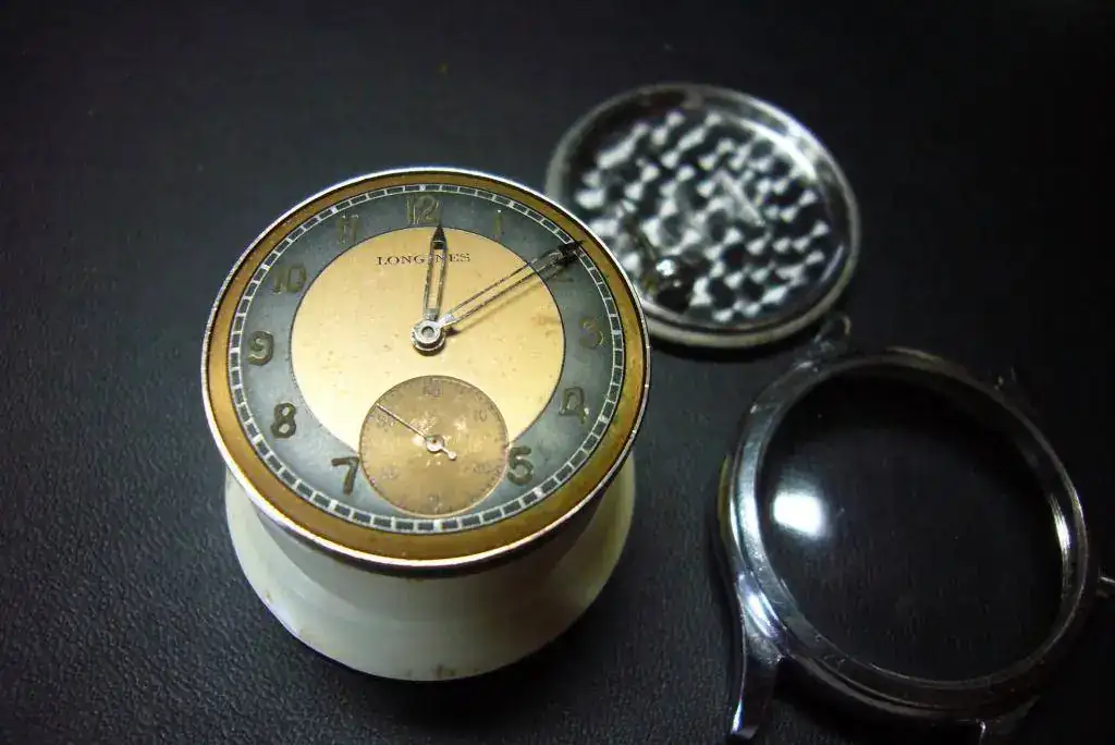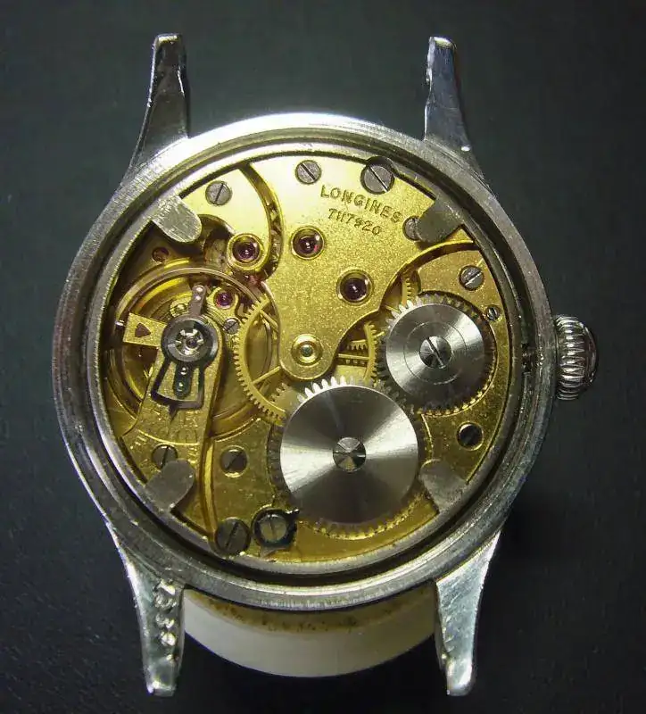 Vendo este Longines 12-68Z por repetido, tengo otros tres. El lumen original de las agujas o se perdió o fue quitado. Todo lo demás está perfecto. Movimiento totalmente dorado, incluida áncora, y totalmente revisado, limpio y aceitado. Las fotos en macro son su mejor presentación.