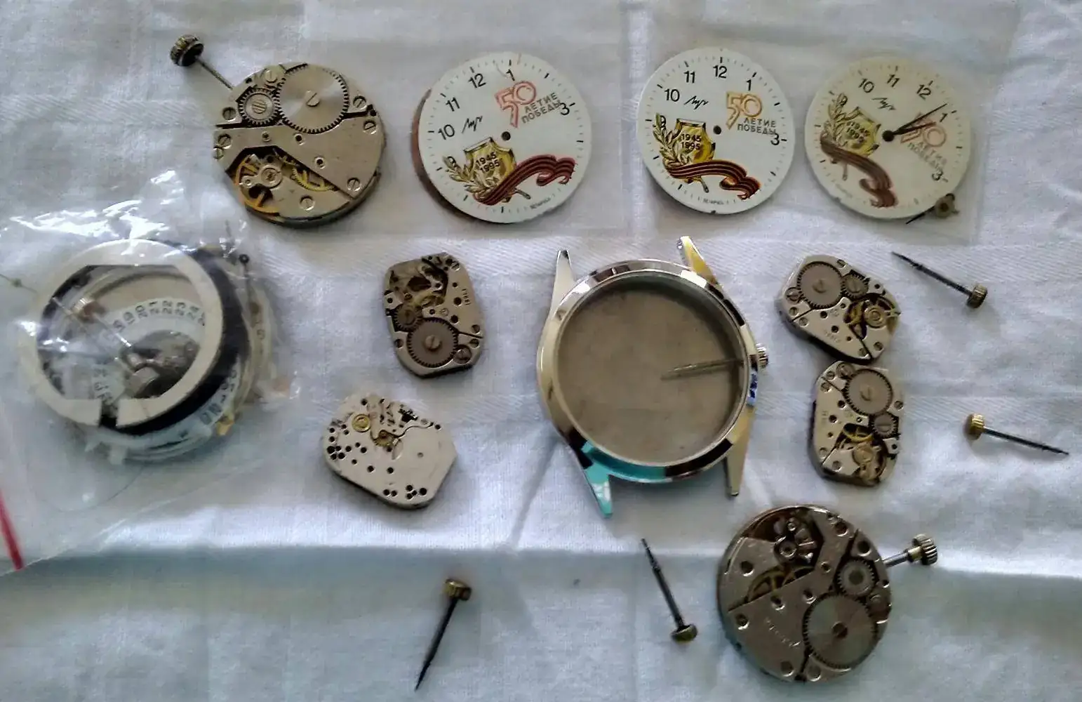 En la chatarra que tengo por ahi, existen partes de varios relojes Luch 50 aniversario de la Victoria en la segunda guerra Mundial, relojes que salieron en 1995.