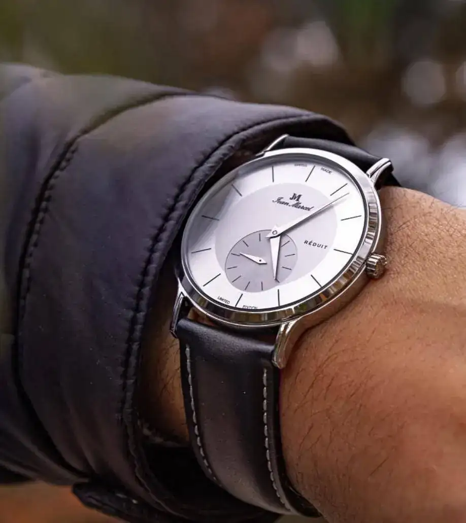 Jean marcel, lo más plano que visto por qué no llega a 6 mm, pero demasiada literatura en el dial, y el que me gusta ya no se fabrica que era el blanco o el azul.
