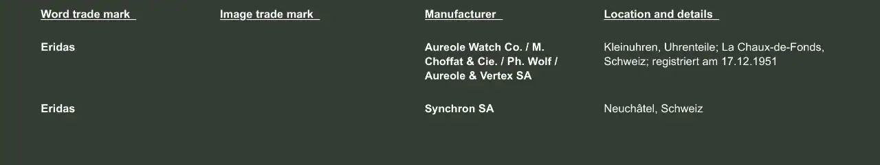 Buenas noches a todos. Soy novato y es la primera vez que escribo aqui, asi que perdonad mi ignorancia. Tengo un reloj de marca: Eridas. Y he buscado monton wn internet y no hay nada sobre esta marca o ese reloj. Me gustaria que si alguien tiene alguna informacion sobre este reloj o sobre la marca. Muchas gracias