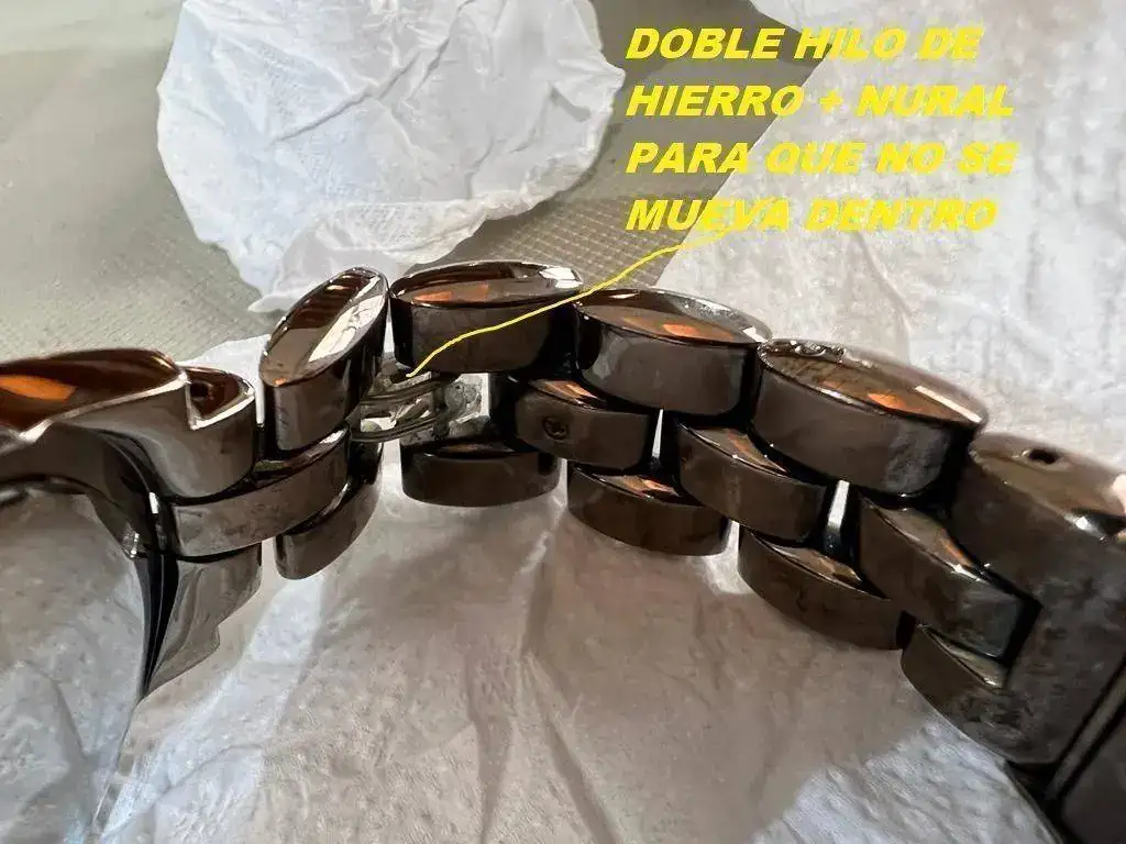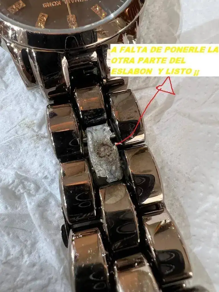 Buenas me han traidor un reloj MK para ver si podía hacer algo para poder salvar este reloj ,ya que el reloj esta descatalogado y no tiene correa nueva....pues bueno metiéndole mano.....al final la clienta quedó como loca a ver su reloj arreglado y listo para usarse de nuevo.........os pongo fotos .....la verdad que fué cosa de pensar un poco y haciendo 2 laminas de hilo de hierro y sujetando de los dos lados...las fijo a la misma base y luego cubro igualmente con Nuralla parte contraria y listo ,bastante bien la verdad que quedó , a ver que os parece...............