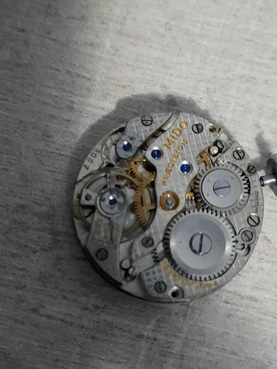 Recientemente adquirí un antiguo reloj de pulsera a un precio bastante barato. La verdad es que la caja no esta especialmente bien, pero al ver la máquina que trae, me he llevado una sorpresa. No se si alguno en el foto puede aportar un poco sobre esta marca y este calibre en concreto (Mido Precision).