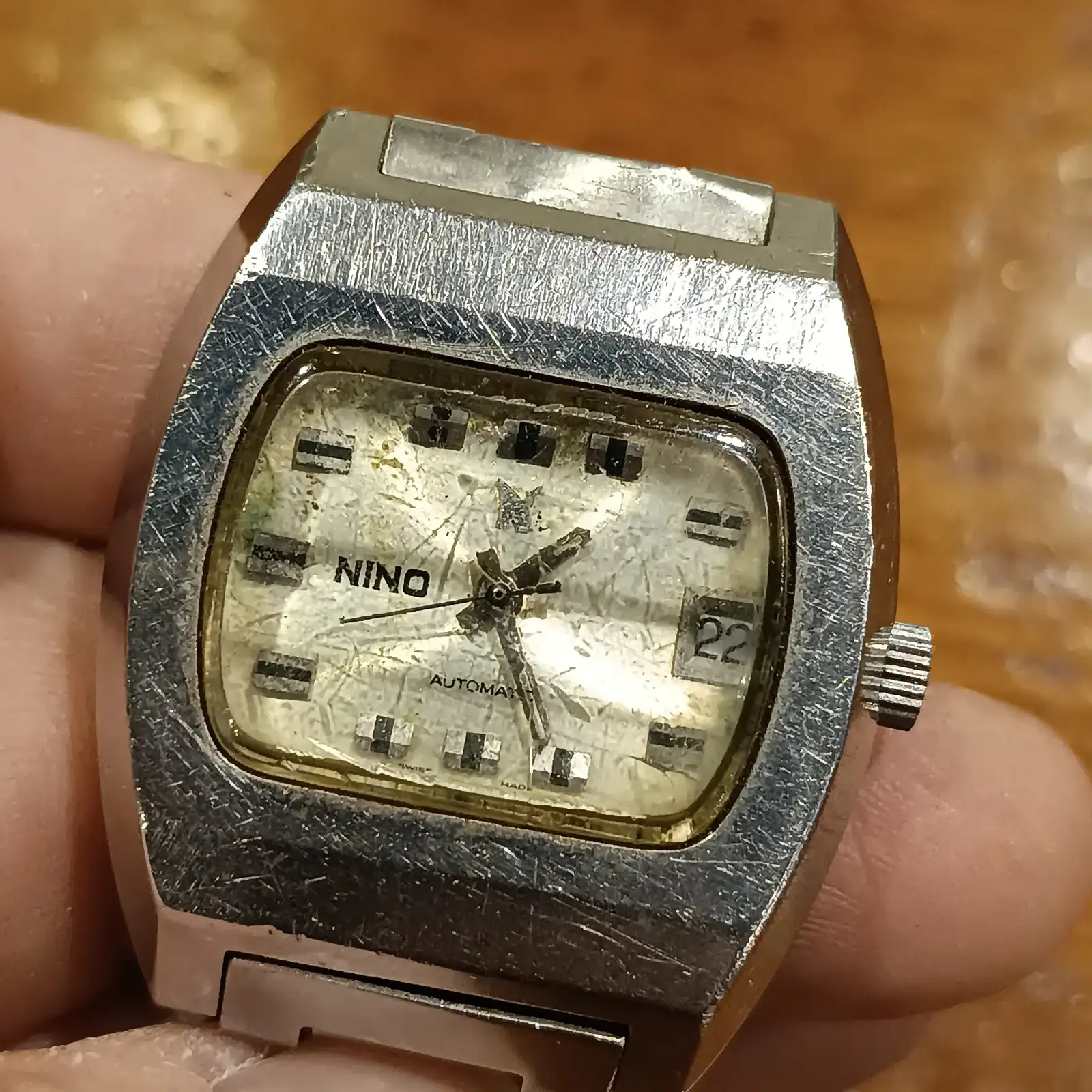 Buenos días. Acabo de coger éste especimen en el rastro. En principio marcha regularmente ,cambia bien las horas y la fecha. Quisiera saber un poco de la marca ,pues es una absoluta desconocida, como tantas por otra parte. Toda ayuda es agradecida. Os dejo fotos actuales.