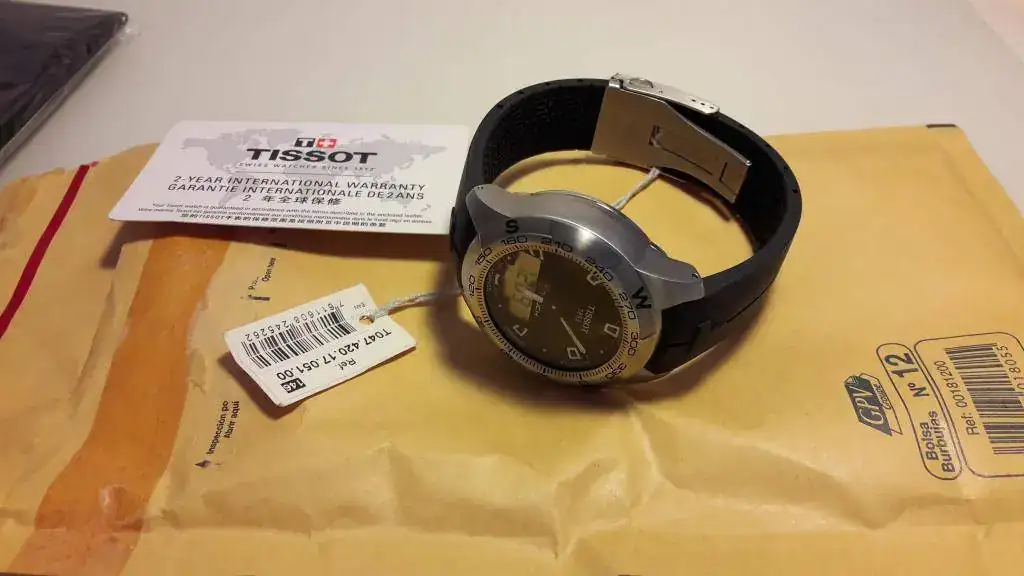 Acabo de recibir un Tissot T-Touch II que compré la semana pasada en un mercante/patrocinador de aquí del foro. El anuncio del FcV decía que el reloj estaba nuevo, pero aún así le pregunté por este extremo al mercante/patrocinador en cuestión. Me contestó textualmente que "El reloj que nos indica en el enlace es totalmente nuevo. Se entrega con su garantía sellada en el momento de compra y con su correspondiente ticket o factura (somos concesionario oficial Tissot)".