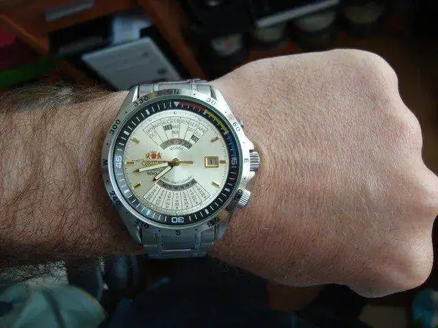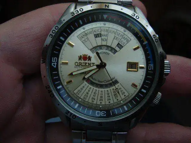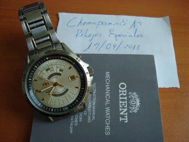 [font="]hola a todos, siguiendo con la restructuracion de la plantilla, como ha entrado varios pues varios tienen que salir y uno de ellos es este bonito y atipico orient automatico multi-year calendar. El reloj es de reestreno, es decir, el que lo compre lo estrena (ni micropelillos ni nada de nada) como se puede apreciar en las fotografias adjuntas. El reloj tienes unas medidas de 43 mm sin corona y 47 mm con ella. El reloj tiene corona a rosca ya que como pone en el dial es un 100 metros. Tiene bisel giratorio interno y como se ve en las fotografias tiene un sistema calendiario muy atipico. El armis esta completo ya que se puede ensanchar cambiando el pasador en el cierre del mismo. [/font] [font="]entrego el reloj y manual ya que la caja no la encuentro (aunque lo enviare debidament embalado). [/font] [font="]el precio que le pongo es de 90 euros con envio incluido por correo certicado con nº seguimiento [/font] [font="]ahora unas fotitos del artista: