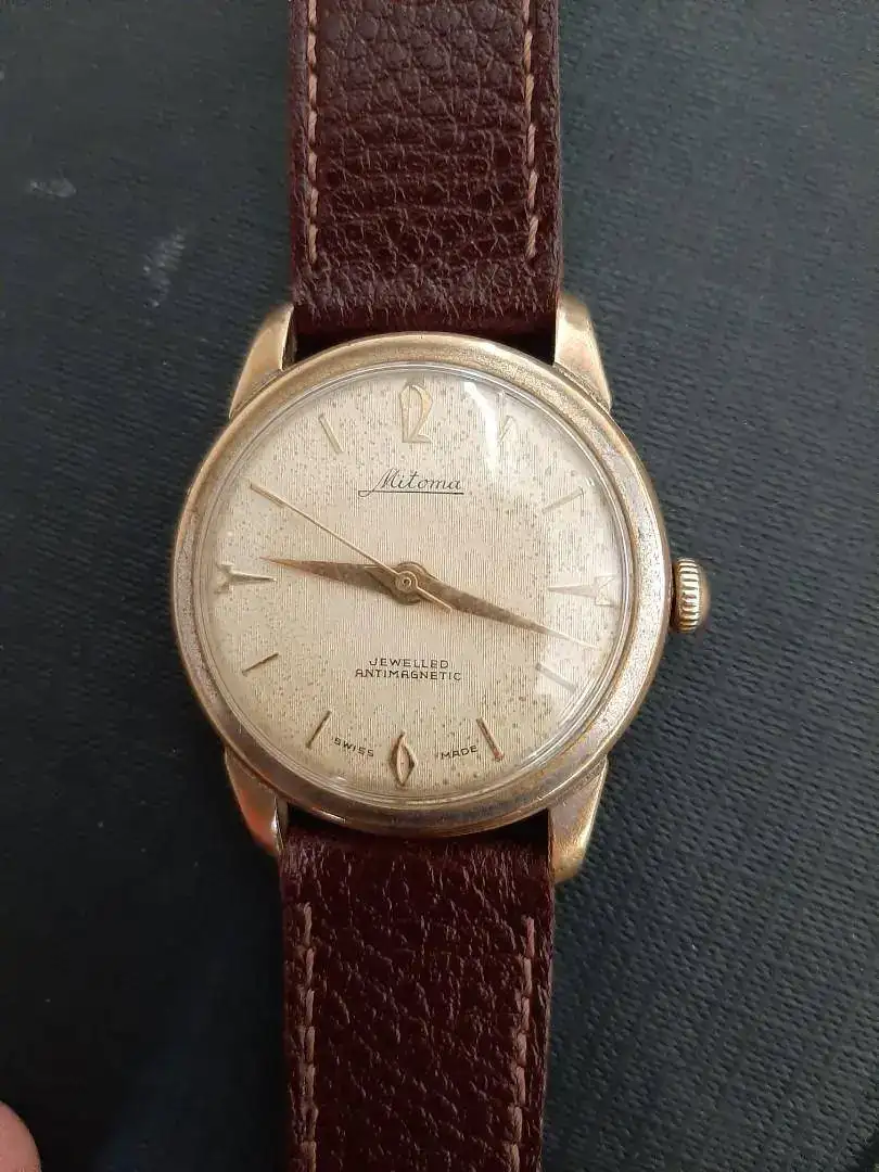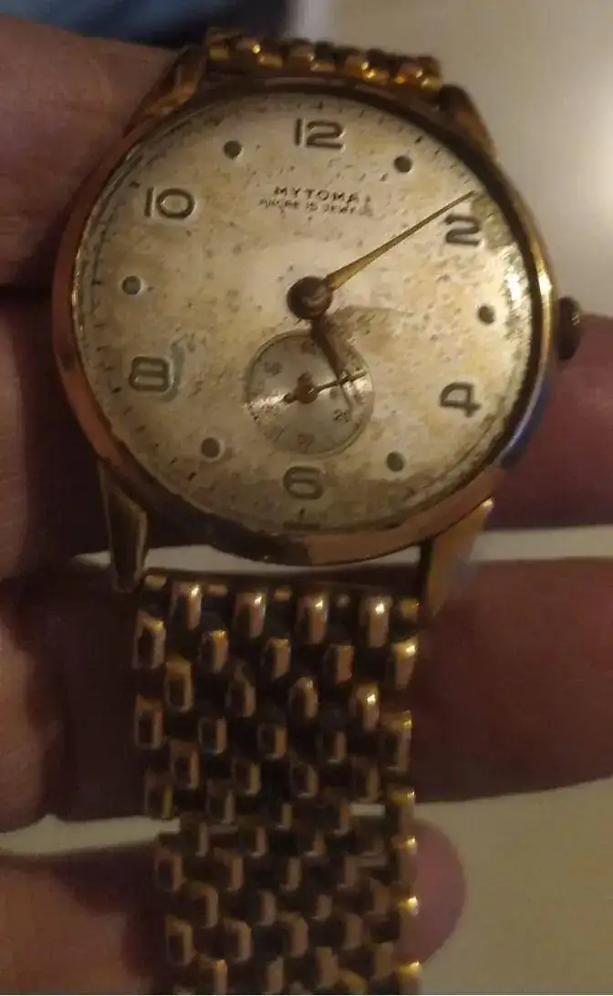 Buenas noches a todos! Hace mucho que no escribo en el foro. El reloj de la foto, con caja y correa de oro, parece decir en la esfera MYTOMA. Intente buscar esa marca en distintos medios, incluyendo este foro, y no me sale absolutamente nada. Alguno conoce esta marca? Será muy ordinaria? Me llama la atención que hayan elegido una maquina de marca tan desconocida para utilizar oro en el resto del reloj. Soy de Argentina. Gracias!