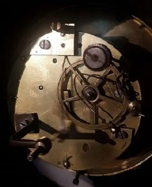 Tengo un reloj pórtico con maquina Paris que adelantada y claro la solución era o bajo el péndulo o aumento el peso de lenteja. Lo raro era que la maquina me marca que el péndulo es de 8 pulgadas (21,64 cm) y el que tengo puesto es mas largo. La solución de aumentar peso no me funciono y el péndulo no podía alargarlo mas por que tocaba la base asi que desconociendo el problema hice un apaño y subí el soporte de la suspensión y pude alargar el péndulo y el problema quedo resuelto.