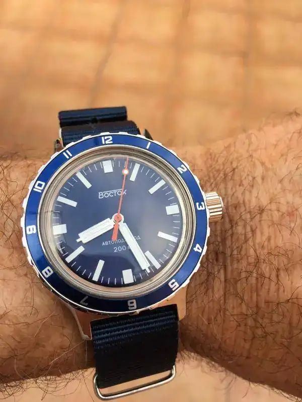 Un ruso en mi muñeca. Hoy estreno este Vostok Amphibian azulito con su nato a juego. IMG_7936.webp