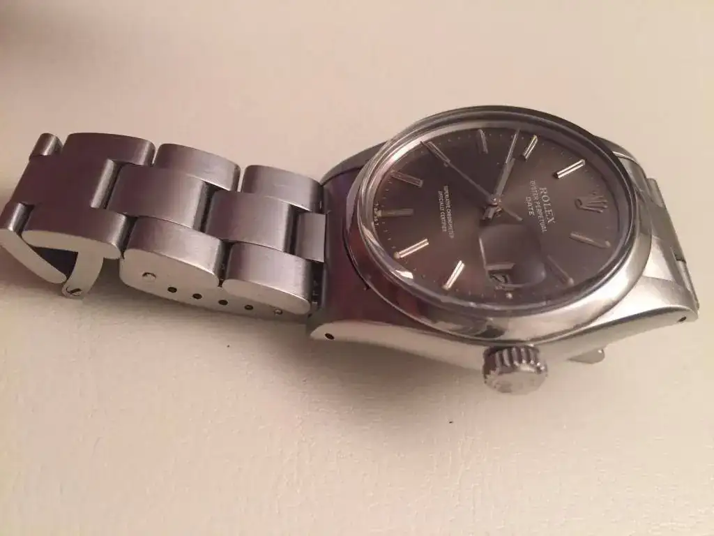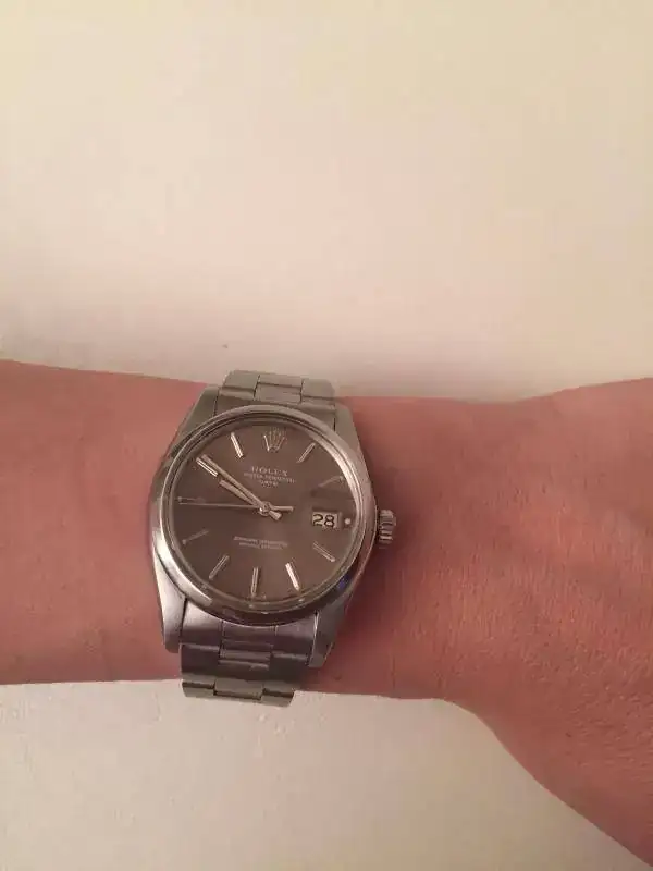 Pues ahí va este Date 1500 de mi novia. Comprado este sábado en la Passion Watch a conocidos mercantes del foro (gran atención, por cierto). En cuanto lo vio se fue a por él, y no me extraña. El dial marrón es precioso y muy poco visto, lástima que en las fotos no luzca como en la realidad. Sólo siento que no sea un poco más grande (34 mm), de lo contrario lo presentaría en mi muñeca.