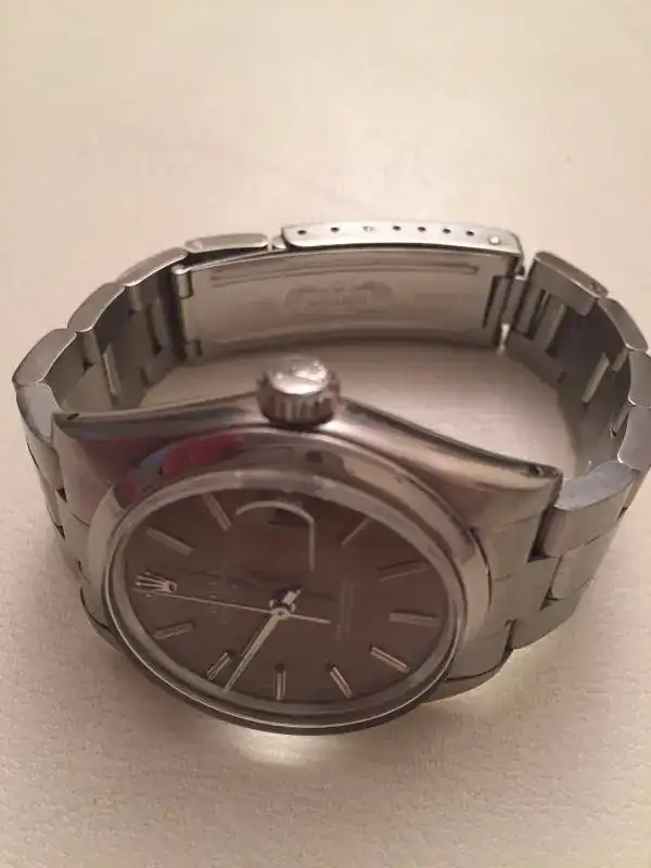 .Pues ahí va este Date 1500 de mi novia. Comprado este sábado en la Passion Watch a conocidos mercantes del foro (gran atención, por cierto). En cuanto lo vio se fue a por él, y no me extraña. El dial marrón es precioso y muy poco visto, lástima que en las fotos no luzca como en la realidad. Sólo siento que no sea un poco más grande (34 mm), de lo contrario lo presentaría en mi muñeca.