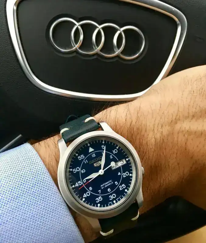 Seiko SNK del 803 al 809 y le compras por aparte la correa de piel.